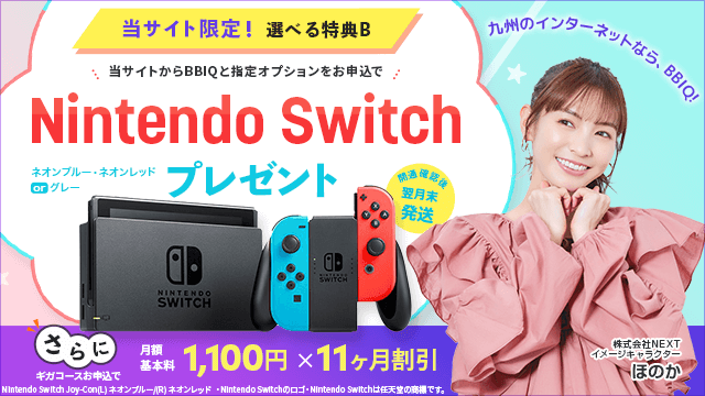 ※キャッシュバックはBBIQ開通確認後の最短3ヶ月後にお振り込み、Nintendo SwitchはBBIQ開通確認後の翌月末に発送いたします。