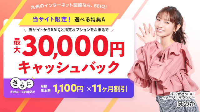 本キャンペーンの詳細につきましては、当社のBBIQ申し込みサイトをご覧ください。