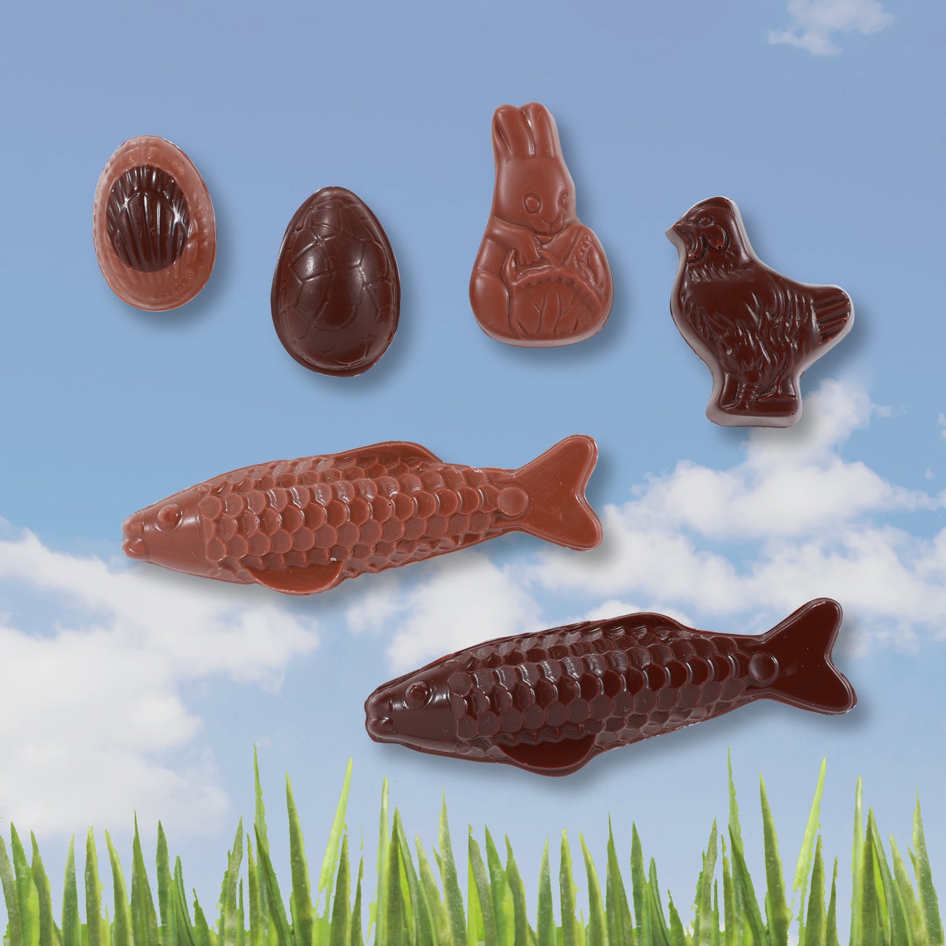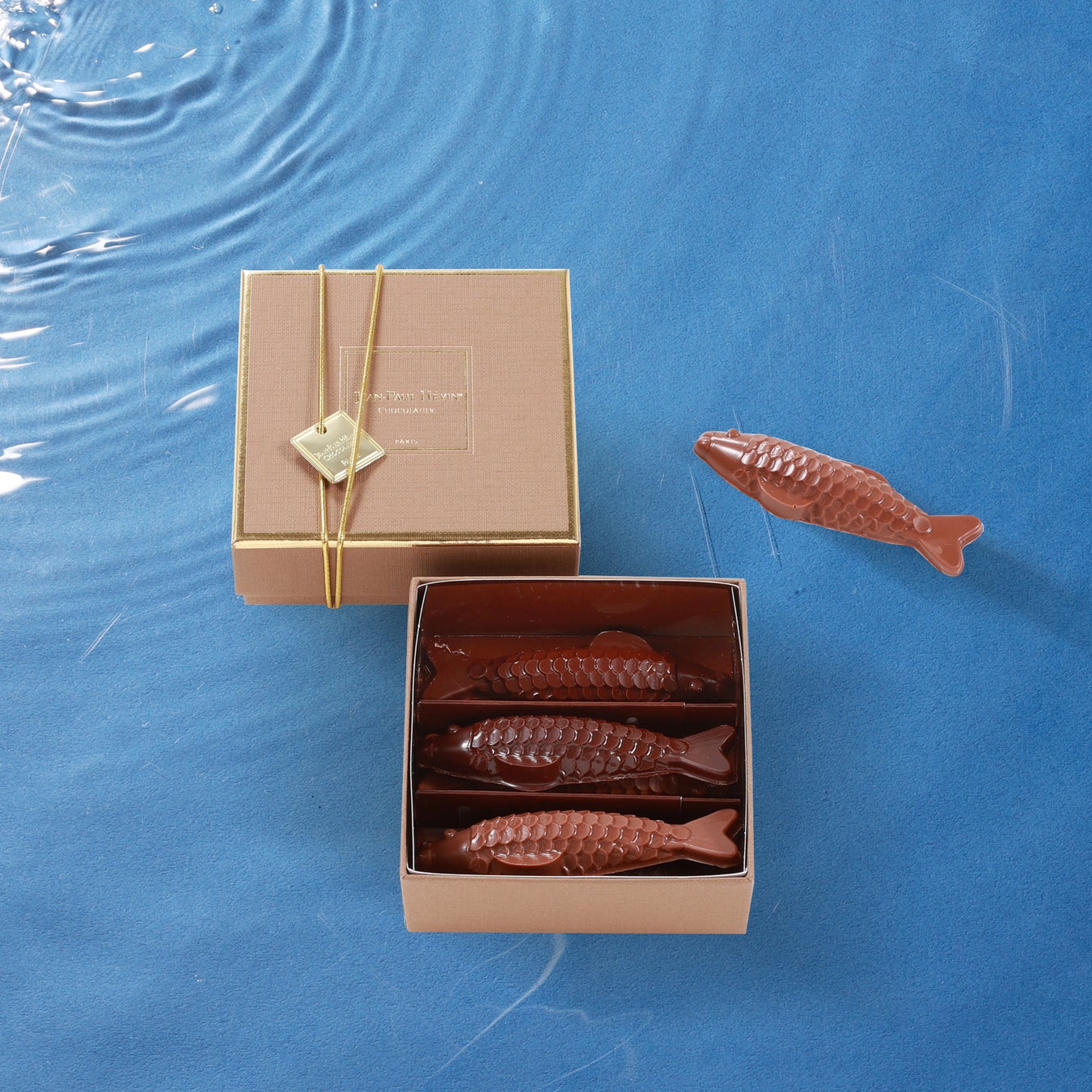 魚の中には、海の生き物をかたどったショコラ「フリチュール」が4個入っています。