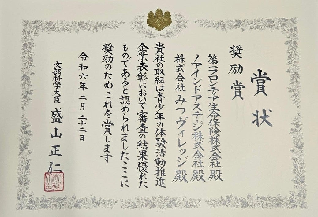 ノアインドアステージ、第一フロンティア生命、みつヴィレッジが令和5年度文部科学省「青少年の体験活動推進企業表彰」の審査委員会奨励賞を受賞