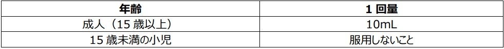下記の1回量を、添付の目盛り付きコップではかり、1日3回食後に服用してください。なお、場合により約4時間ごとに1日6回まで服用することができます。