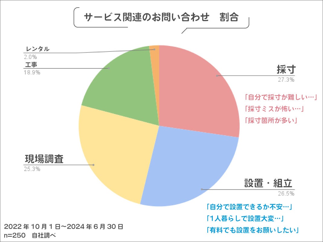 ただ、サイズオーダーが必要な壁の防音ボードなどの採寸ミスや設置の不安が原因で防音商品の購入をためらうお客様が多い現状があります。実際に、多くの問い合わせで「採寸や設置を代行して欲しい」という要望を受けてきました。
