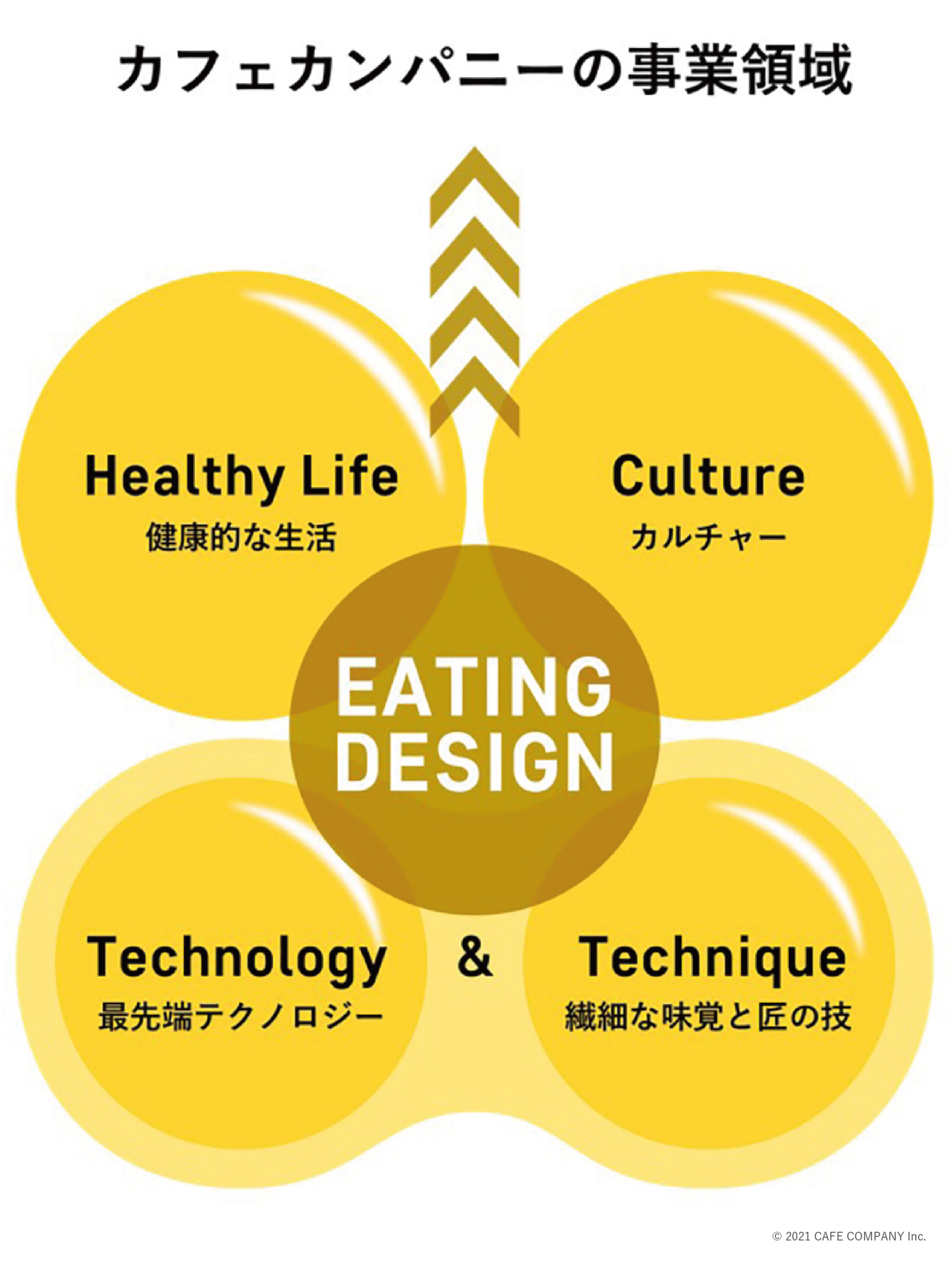 カフェ・カンパニーは、食×エンターテインメント、食×カルチャー、食×ヘルシーライフを「食べる」という行為の中で身近に楽しく提供していく取り組みとして、世界中のテクノロジーと日本の匠の技を未来に継承し、新しい価値に変えていくための事業を展開しています。