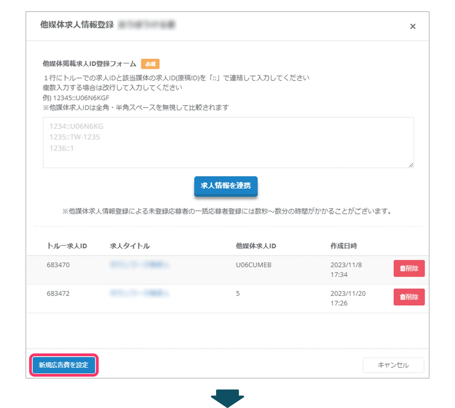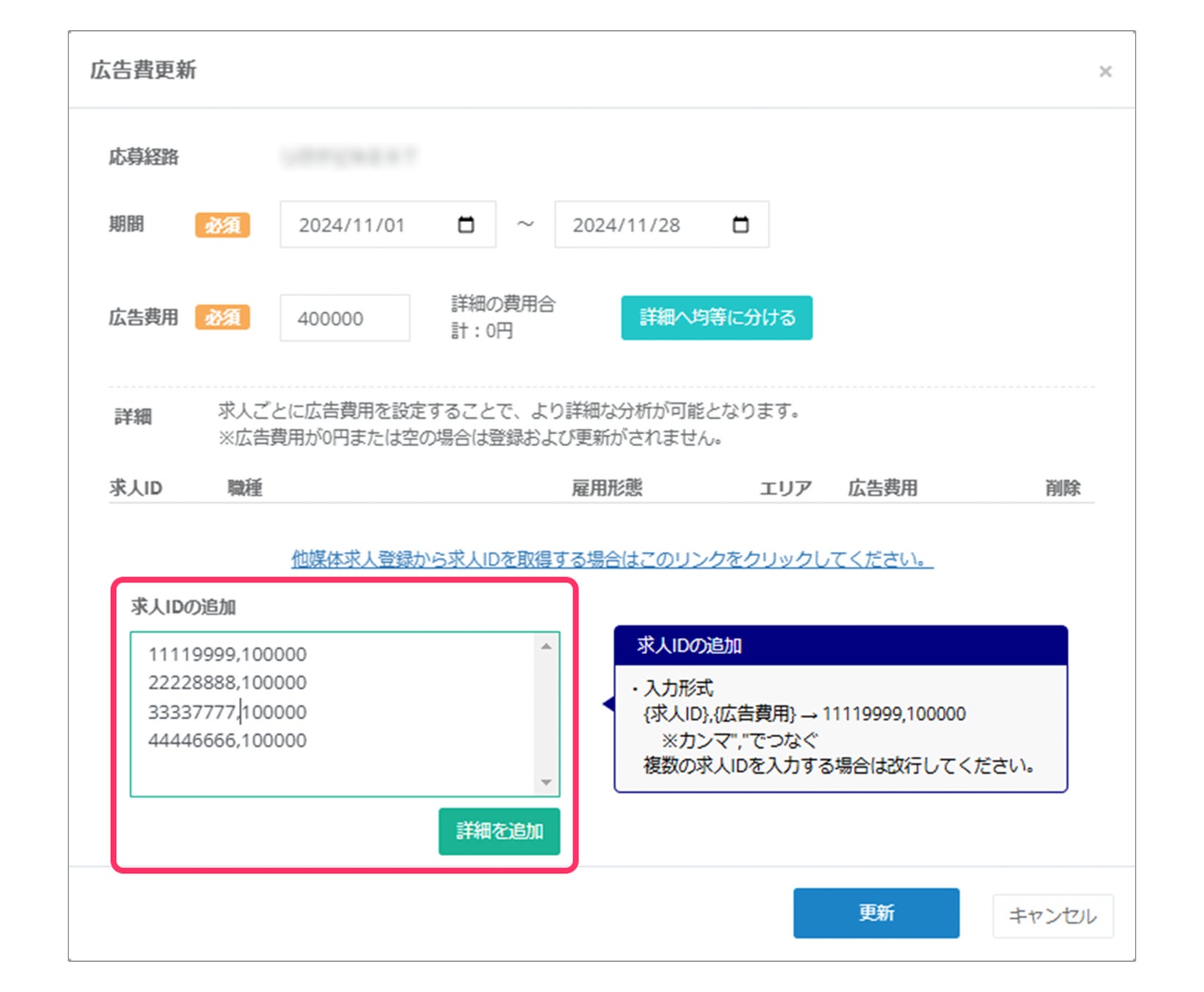 アップデート以前は、ATSレポートに求人媒体の広告費用を反映する際、紐づけたい求人IDと広告費用を、求人一覧を参照し手入力する必要がありました。