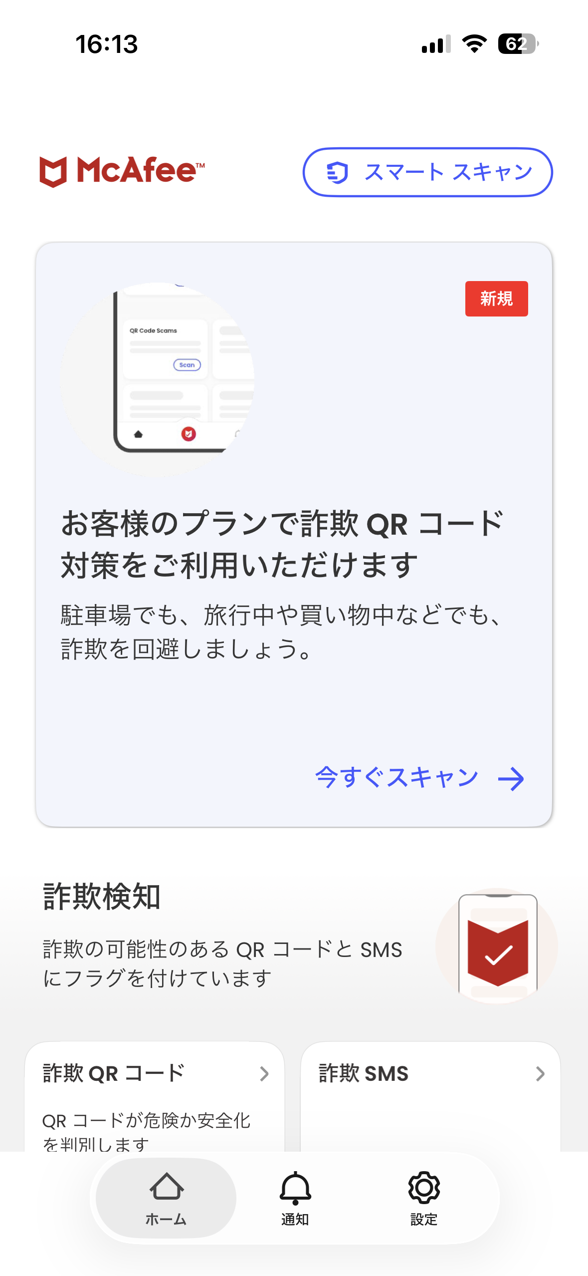 マカフィーの機能は、明確なガイダンスと強力な保護機能により、皆様が本物と偽物を簡単に見分け、詐欺から身を守れるようサポートします。マカフィーアプリでQRコードを読み取るだけで、手間なくその場で瞬時に安全性をチェックすることができます。