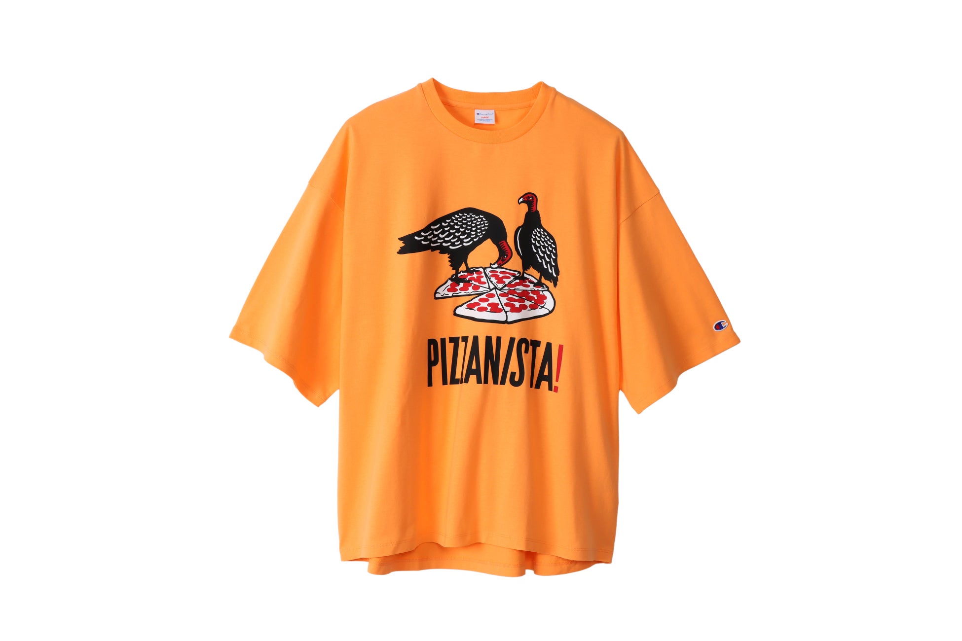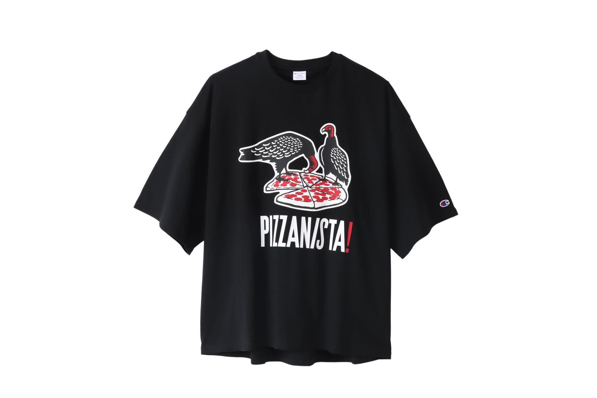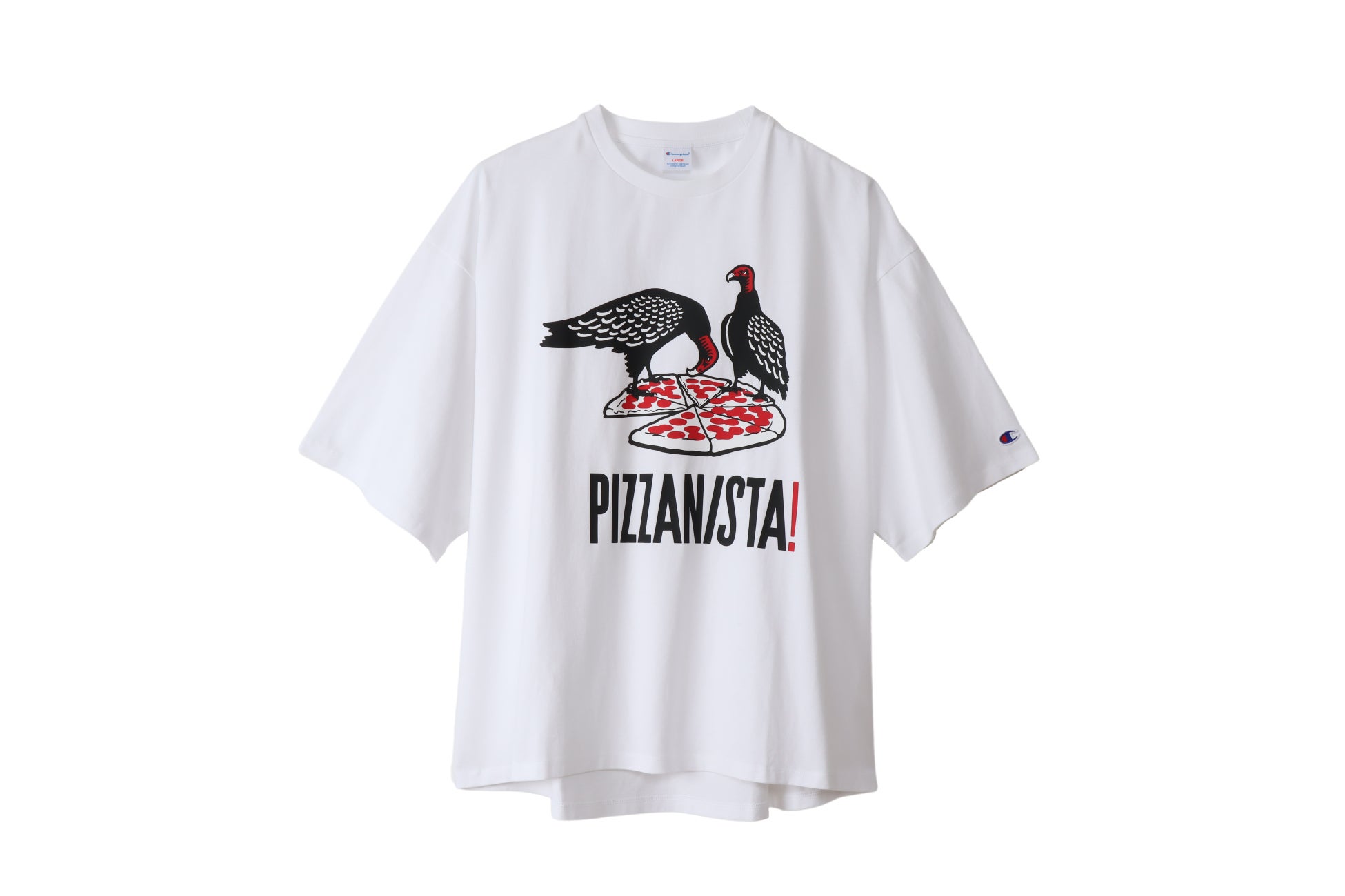 今回のコラボレーションアイテムは、上野伸平氏が特別にデザインした、ショートスリーブTシャツ、ロングスリーブTシャツの2型を展開いたします。いずれのグラフィックも、本国のPIZZANISTA!のデザインチームが制作し、チャンピオンと同じ「アメリカ生まれのPIZZANISTA!らしさ」をデザインで表現するため、アメリカの空気感とピザのフレッシュさ、オーセンティックさ、そしてPIZZANISTA!らしいユーモアをポップにデザインで表現しています。