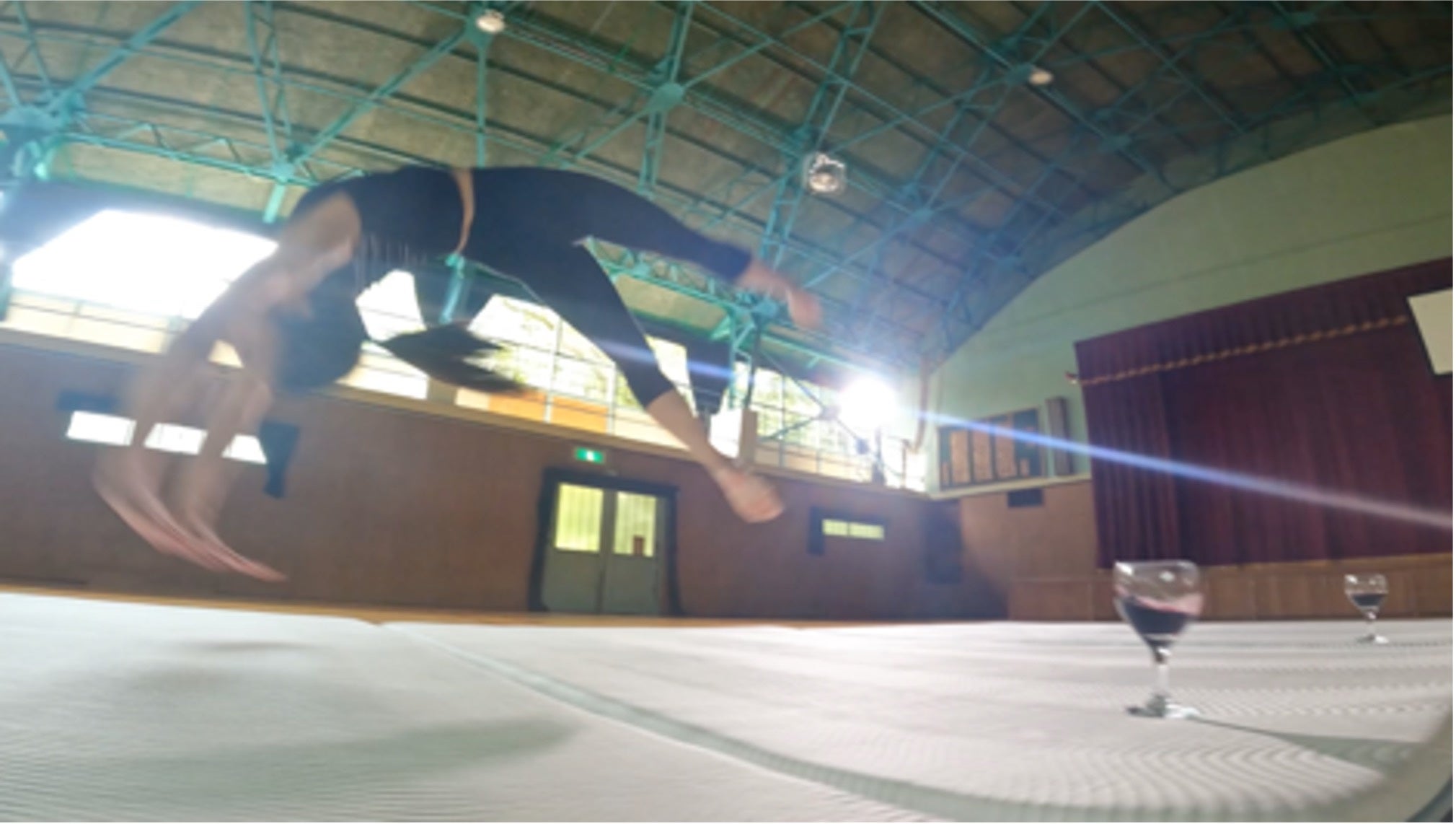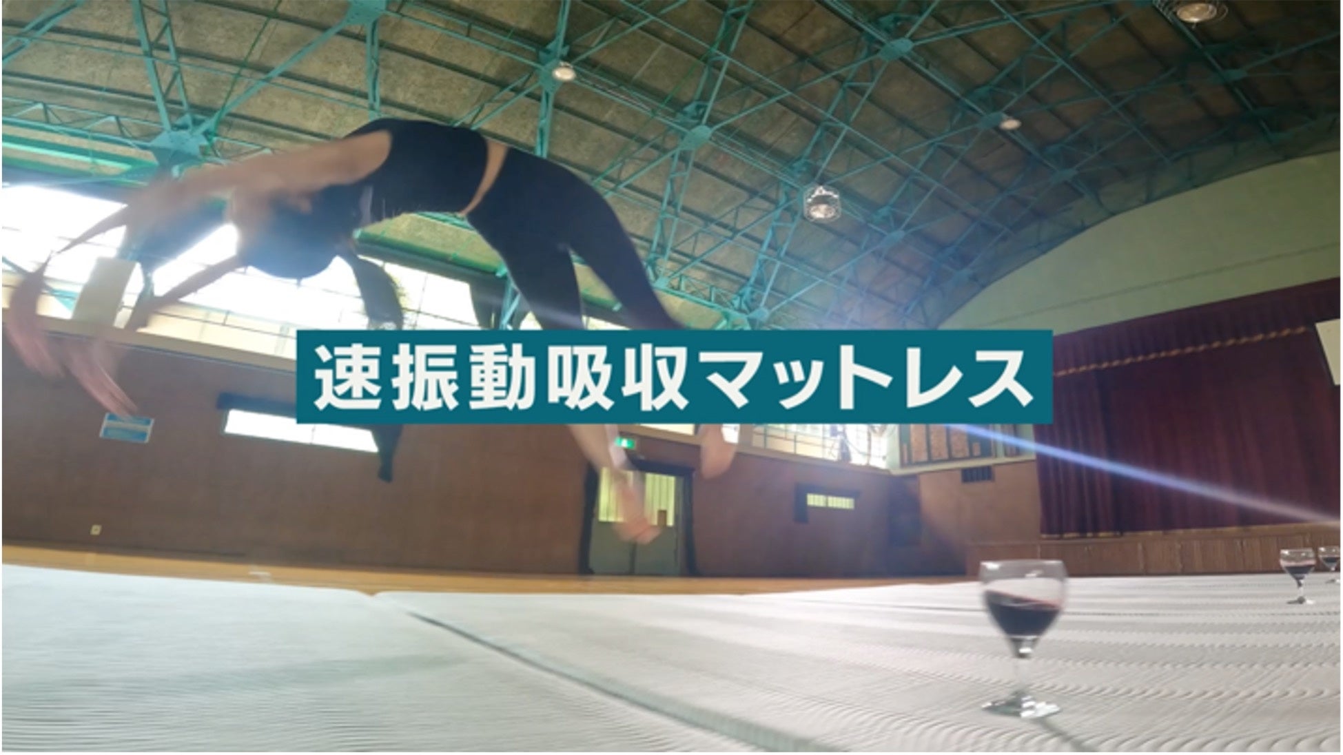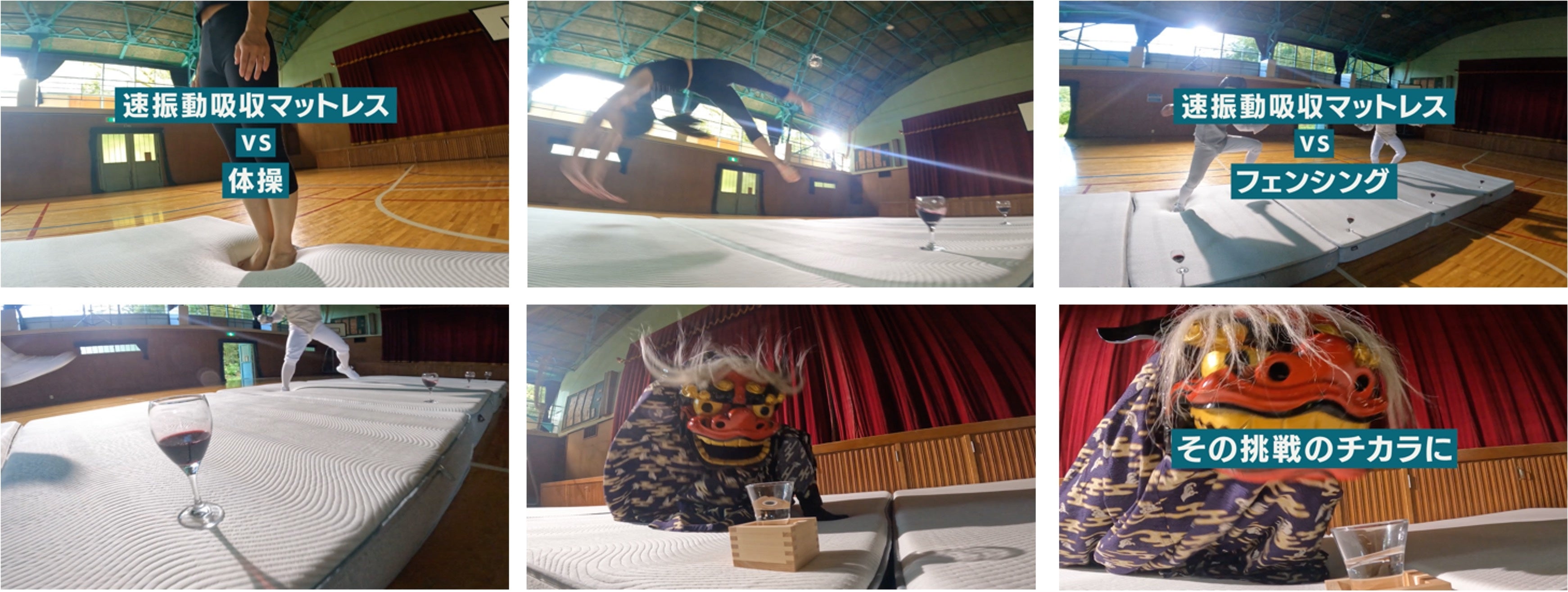 コアラマットレスの上で体操、フェンシング、獅子舞演舞などダイナミックな動きをしてもワイングラスからワインがこぼれない!?