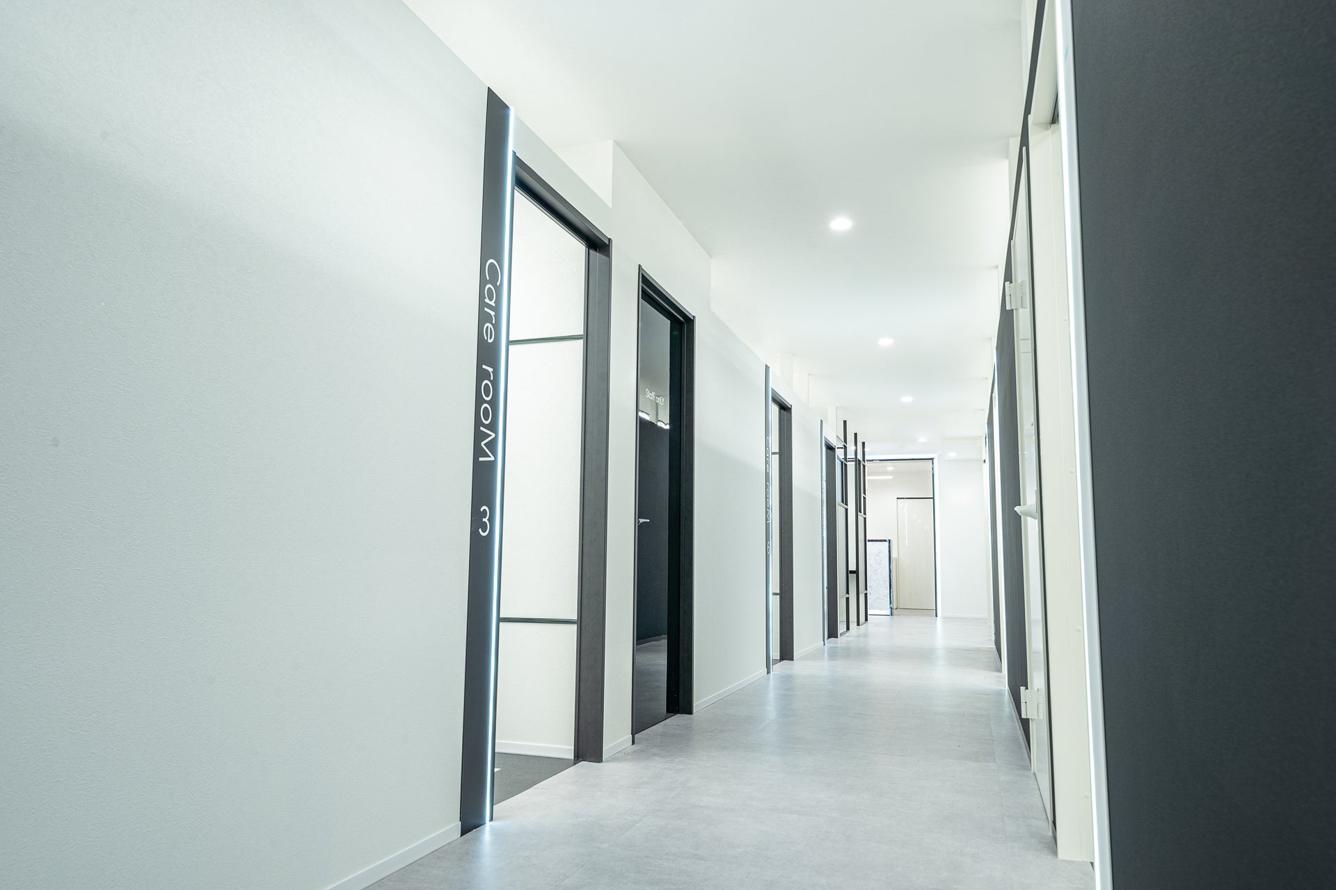 次代のTCBの一翼を担う、新たな空間デザイン。モノトーンに飾られた単色空間に浮かび上がるのは、TCBブランドを象徴する色彩豊かな花々と虹色に輝くスタッフ、そしてクリニックの主役たる患者様たちの多様性です。美容医療というポジティブな医療を提供する場として、診察室・処置室といった名称を置き換え病院色を排除。表層的に外見だけを着飾るのではなく、内面的なサービスとそこに居る人々そのものを輝かせる次代の美容クリニックを目指します。