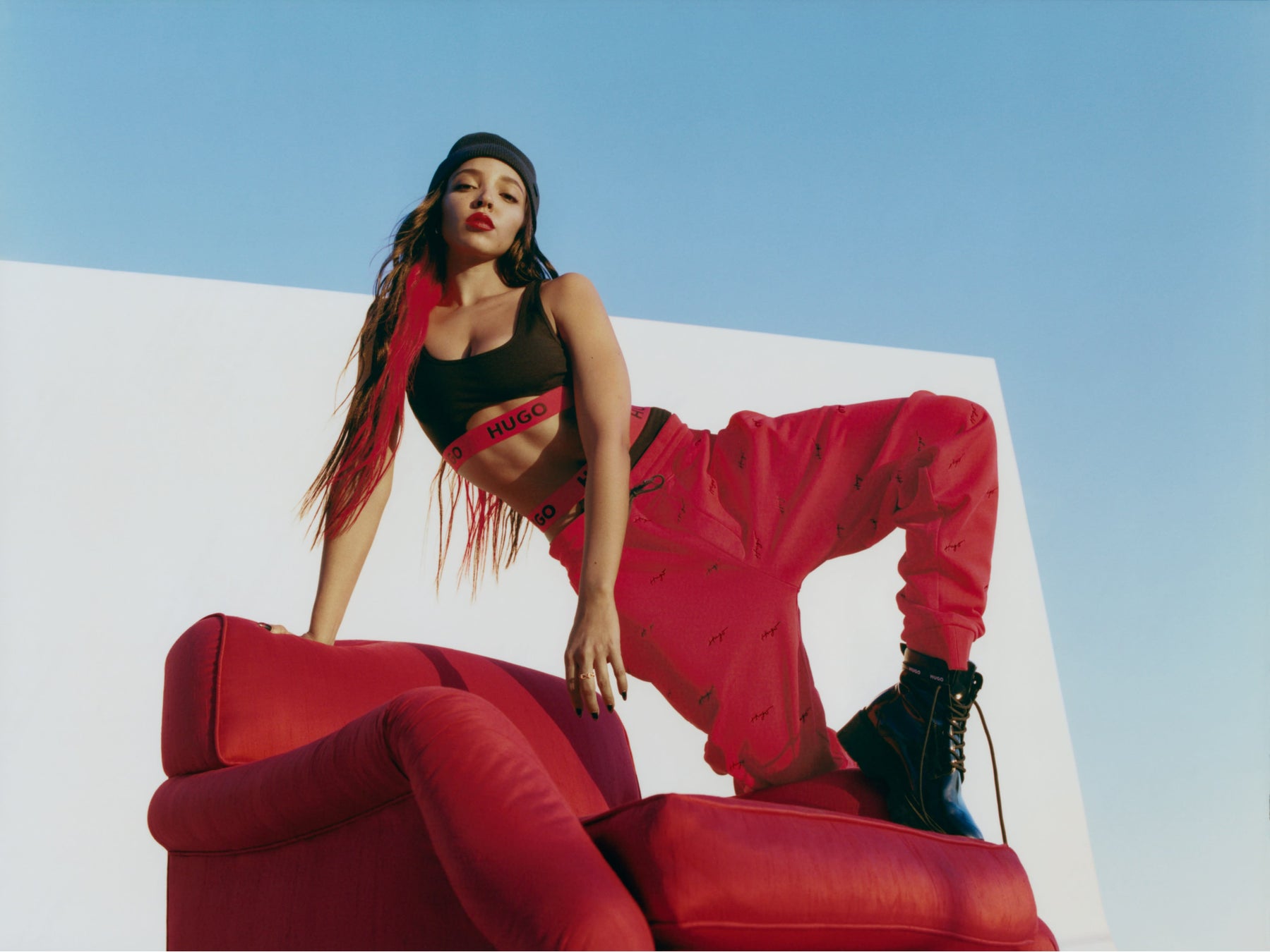これらのキャンペーンスターが目を引くだけでなく、HUGOの2023年春夏新コレクションも輝きを放って紹介されています。現代的なオーバーサイズのデニム、スマートに生まれ変わったロゴ、そしてHUGOのシグネチャーカラーである赤のレイヤーが、今シーズンのスタイルステートメントを表現。メンズはジーンズ、セーター、パーカーそしてアクセサリー、ウィメンズではボディウェア、スカート、シューズそしてプリントが施されたパンツなど、自由なテーラリングと個性的なルックが融合した、挑戦的なカプセルコレクションが登場します。