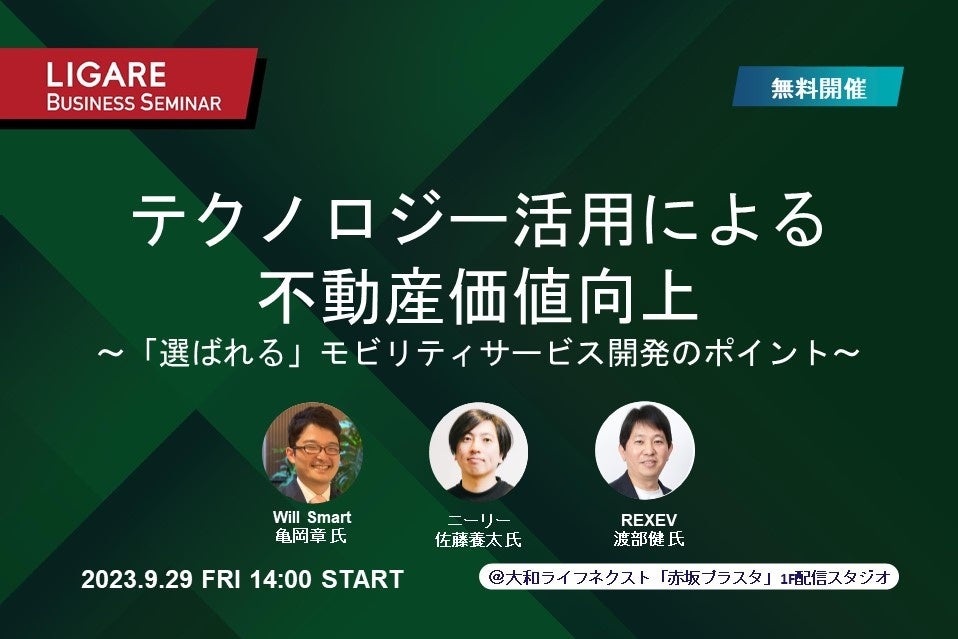分譲マンションからビル・商業施設などあらゆる不動産を管理する大和ライフネクストと、モビリティサービス専門誌「LIGARE(リガーレ)」が開催する、不動産×モビリティをテーマにした共同セミナー。