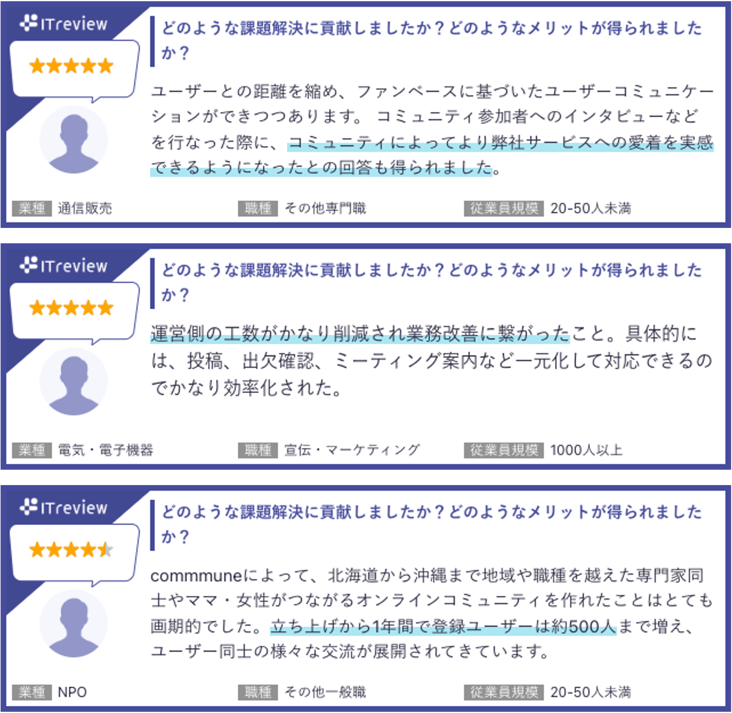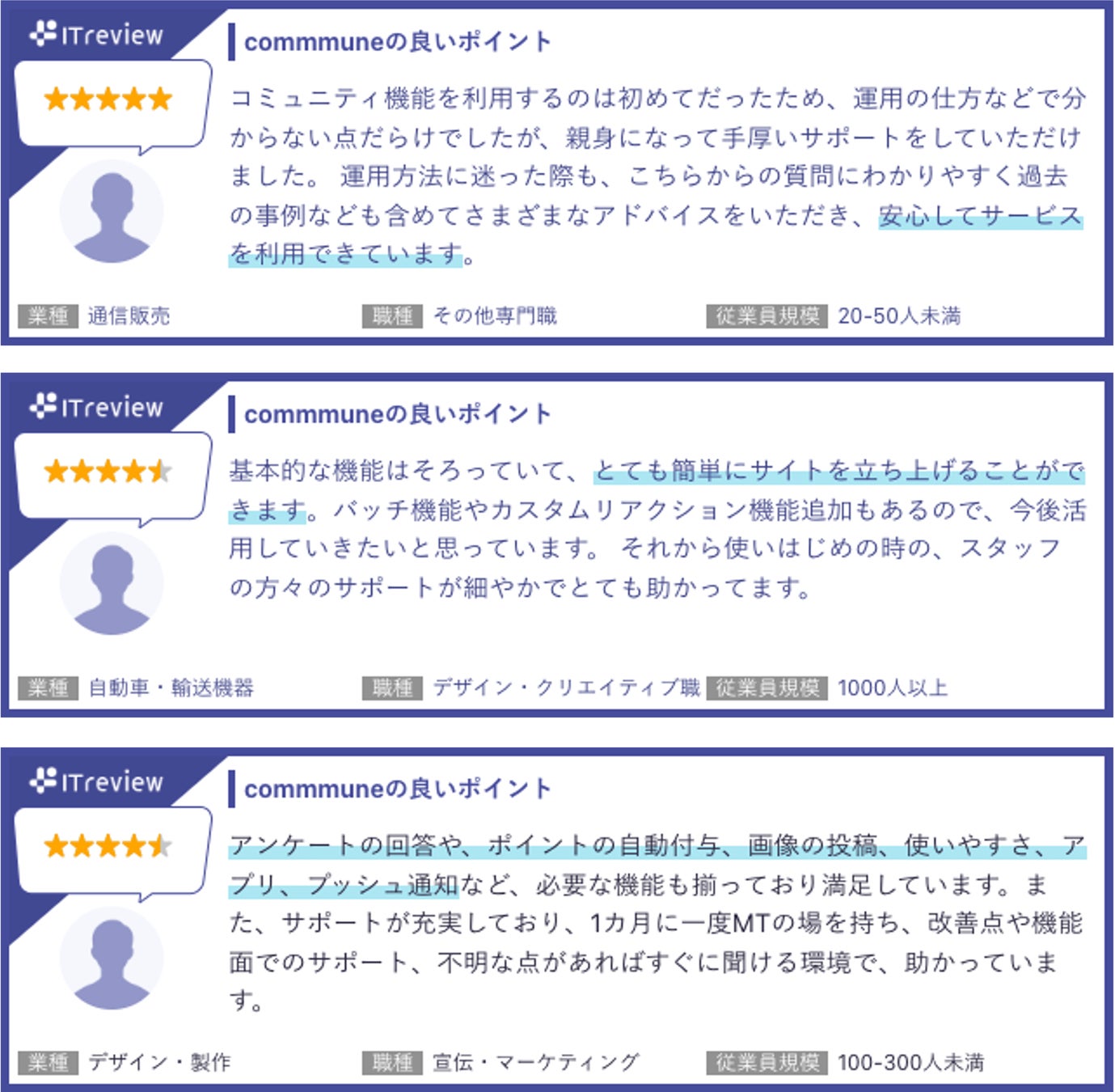 企業とユーザーが融け合うコミュニティサクセスプラットフォーム「commmune(コミューン)」と、効率的なカスタマーサクセスのためのアクション基盤「SuccessHub(サクセスハブ)」を提供するコミューン株式会社(本社:東京都品川区、代表取締役CEO:高田優哉)は、アイティクラウド株式会社(本社:東京都港区、代表取締役社長:黒野 源太)が主催する「ITreview Grid Award 2022 Summer」において、「commmune」がユーザー満足度の高いサービスであると評価されたことをお知らせいたします。