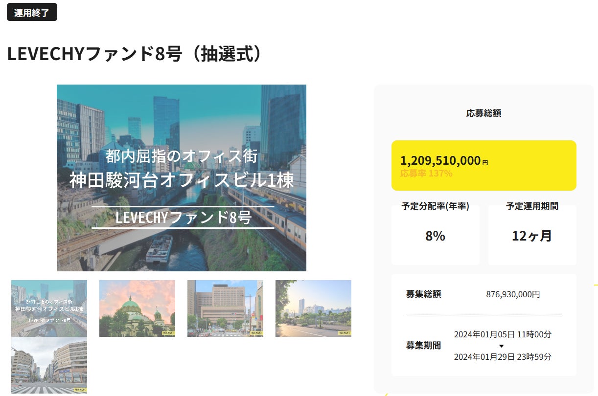 不動産クラウドファンディング「LEVECHY「(レベチー)」|ファンド8号の償還及び配当を実施
