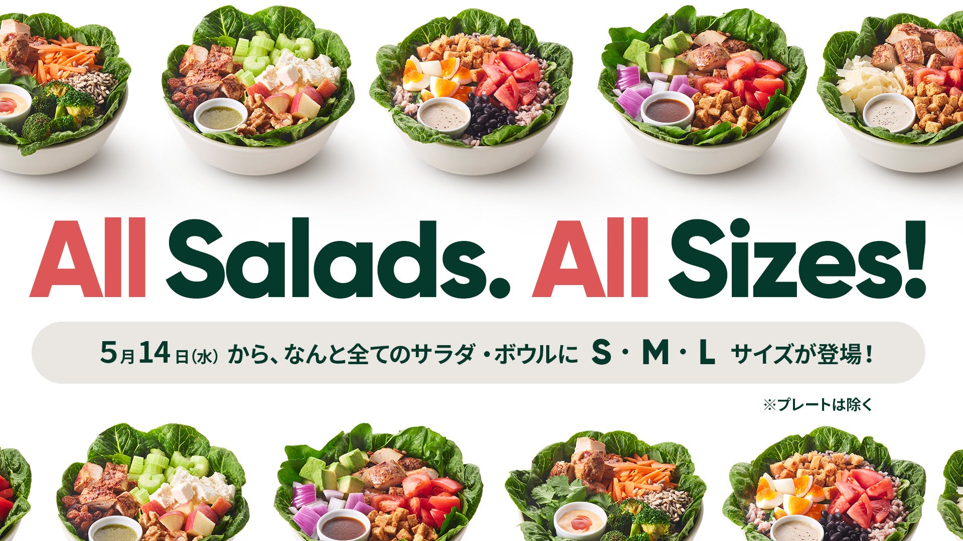 これまで1サイズ(Mサイズとして継続)で提供していたサラダが、S・M・Lの3つのサイズから選べることで、お客様一人ひとりの、その時々の食欲や食事シーン、ライフスタイルに合わせて、トッピングだけでなくサラダのボリュームもより自由にカスタマイズできます。