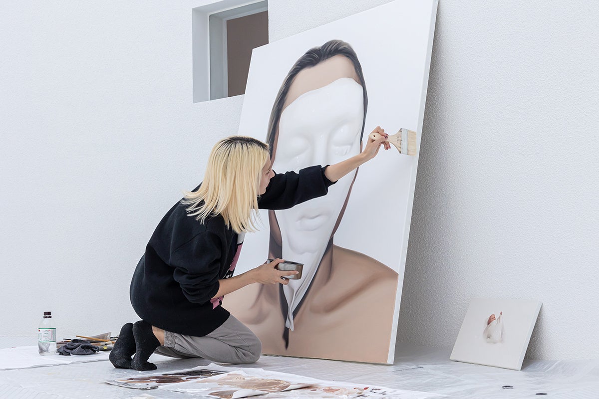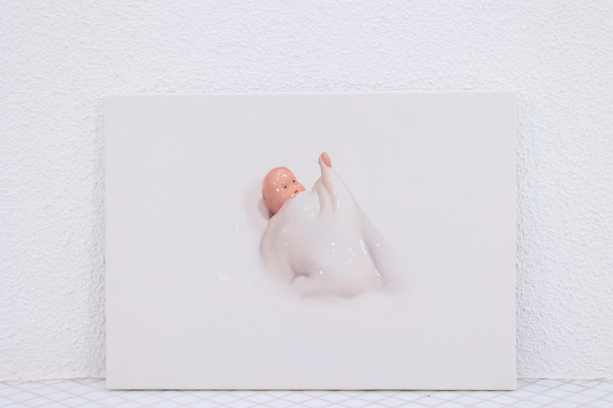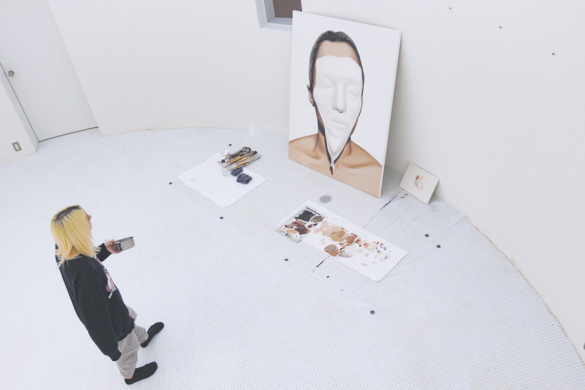 初回のレジデンスに参加いただいたのはアーティストの友沢こたおさん。現在、東京藝術大学大学院美術研究科に在学し、スライム状の物質と有機的なモチーフが絡み合う独特な人物画を描いています。シンプルな構成ながら、物質の質感や透け感、柔らかさのリアルな表現が見る者に強い印象を与える、注目の若手アーティストです。