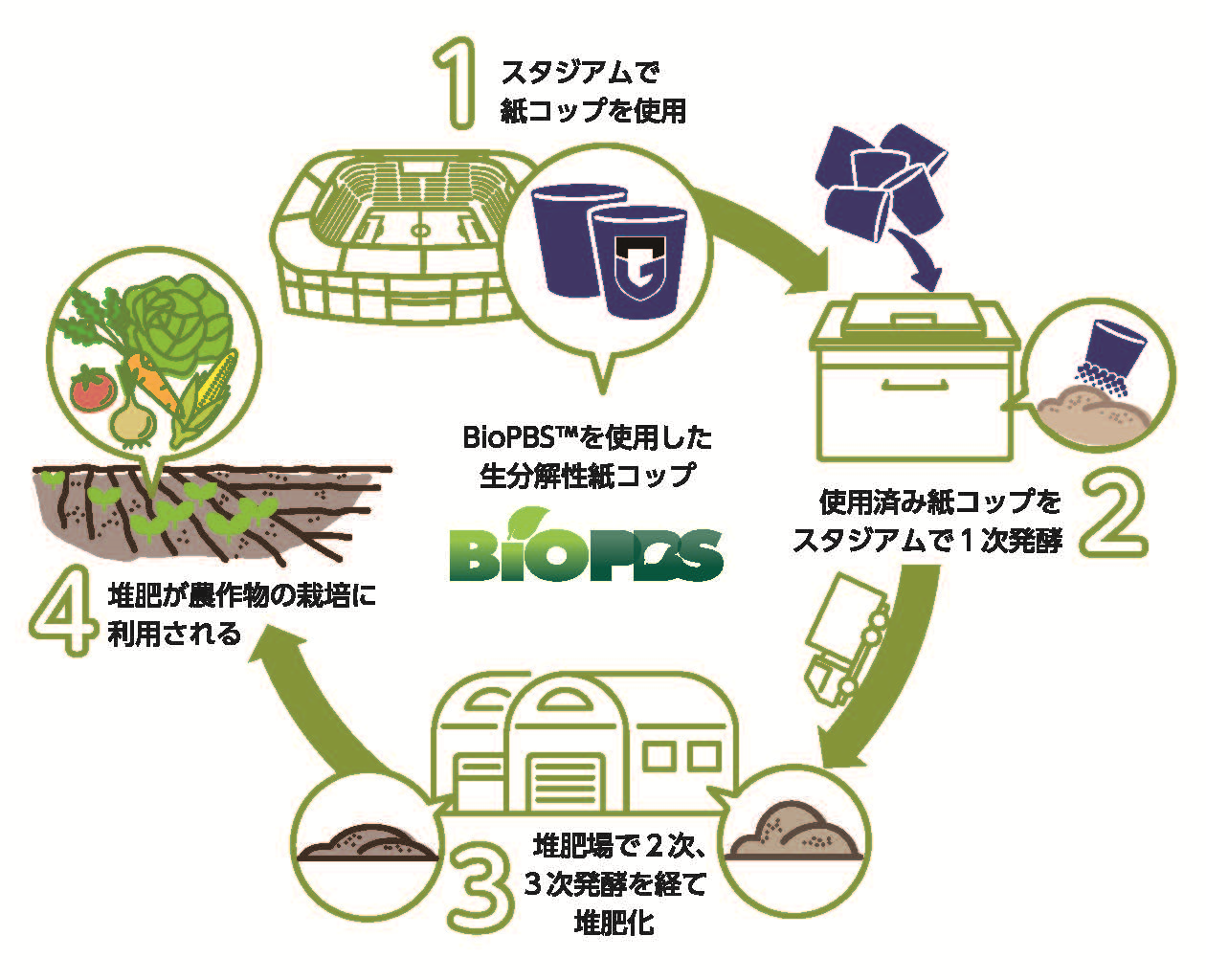 「紙コップが堆肥に!」ガンバ大阪、三菱ケミカルが行う実証実験に参画。循環型システムの実証実験開始~スタジアムで応援しながら、資源循環にも貢献しよう!~