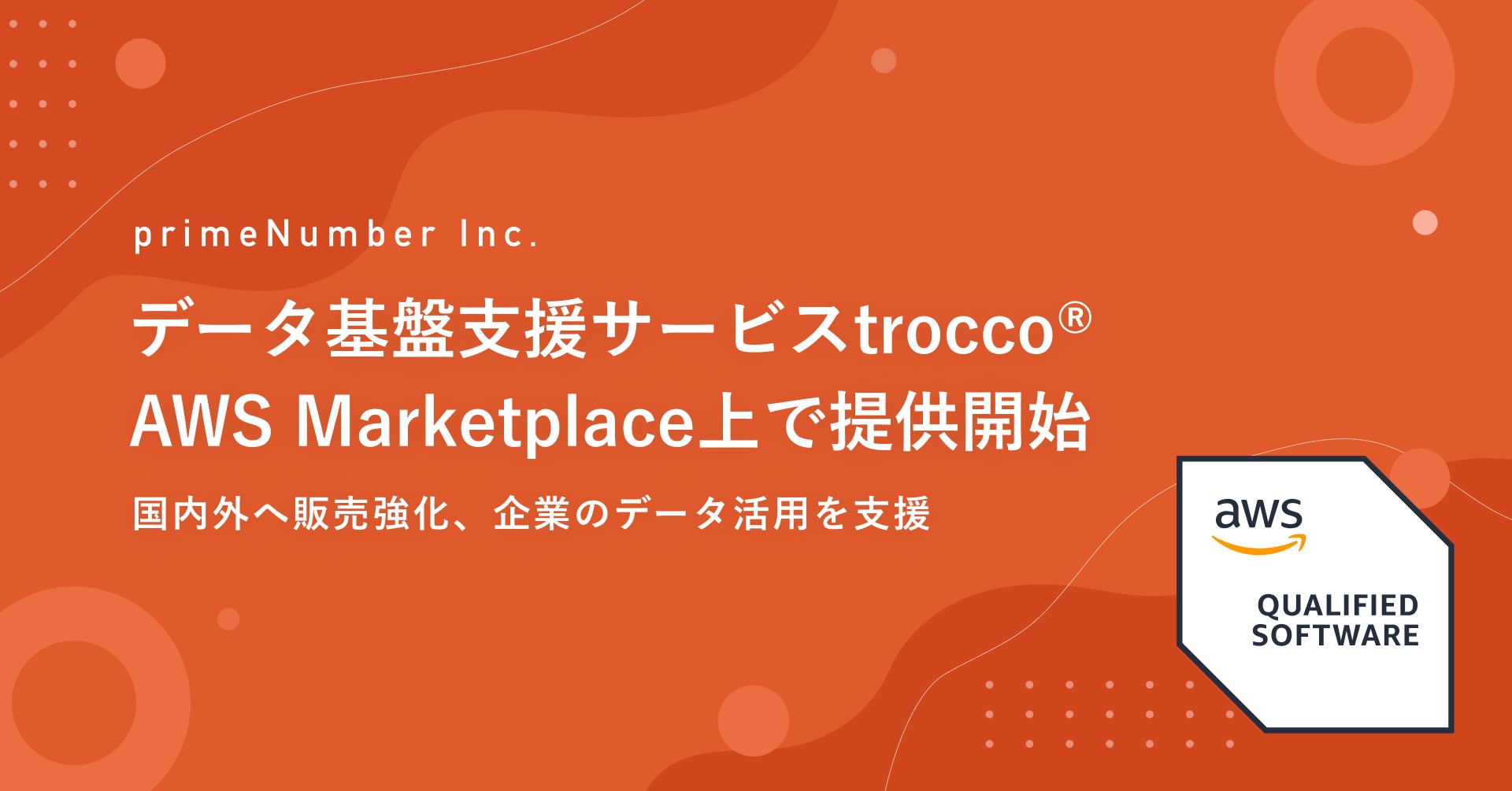 primeNumber社のデータ基盤支援サービスtrocco®、AWS Marketplace上で提供開始。国内外へ販売強化、企業のデータ活用を支援