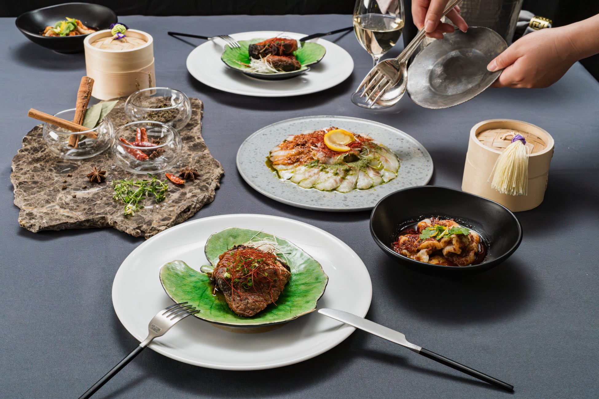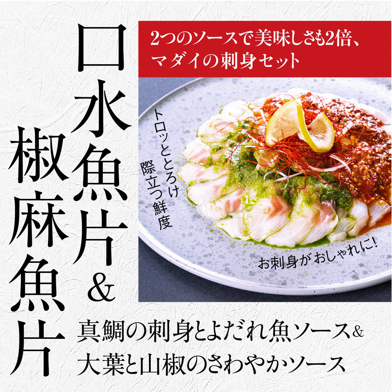 ・口水魚片&椒麻魚片(真鯛の刺身とよだれ魚ソース&山椒と大葉のさわやかソース)