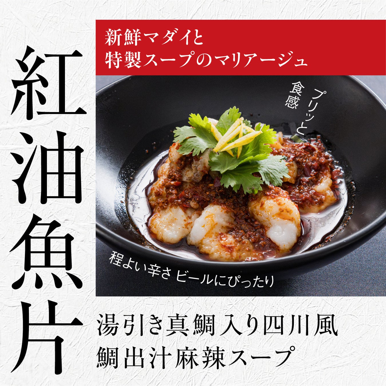・紅油魚片(湯引き真鯛入り四川風鯛出汁麻辣スープ)
