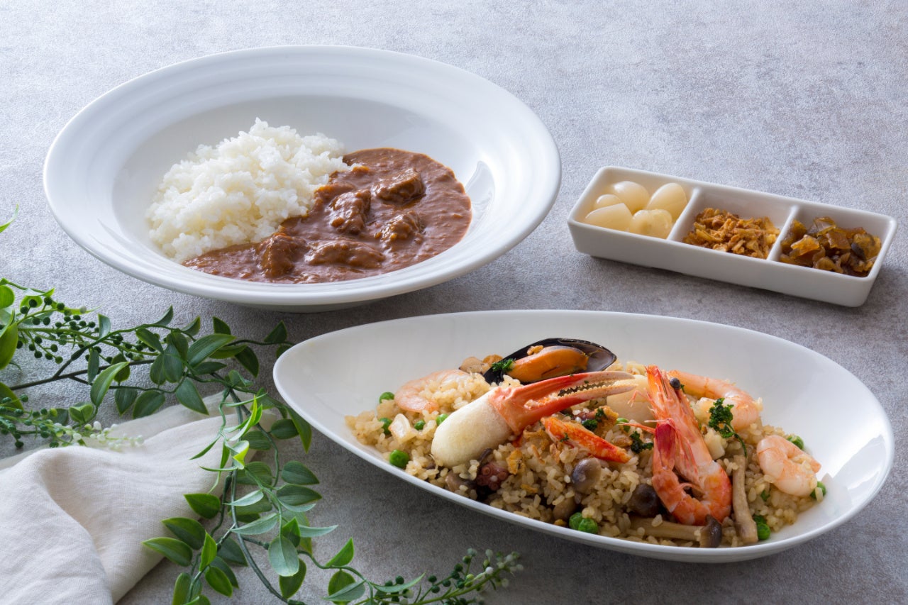 各店のシェフが趣向を凝らしたメニューはもちろん、ホテル創業時から多くの人に愛されるシーフードを贅沢に使ったピラフや、フルーティーでコク深い味にファンの多い和牛ビーフカレーもお値打ち価格で登場いたします。