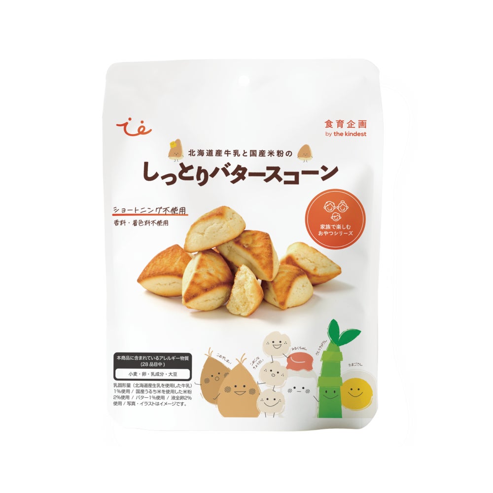 クリームやバターを使うことで濃厚な香りとコクを実現しました。食材本来のミルキーでやさしい甘みが特徴です。また、リッチな味わいのスコーンには実は米粉が入っておりお米の甘みを生かしながら、外はこんがり、中はしっとりと焼き上げました。お子様が手に持ちやすく食べやすい仕上がりです。