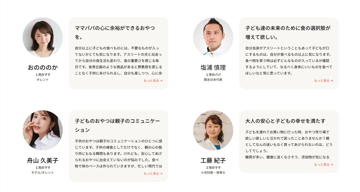 『食育企画 by the kindest』特設サイト内では、共同開発者である長友夫婦や子育てしながらご活躍されているアスリートや専門家などの著名人の方々から寄せられたメッセージを公開しています。今後、新商品の情報や食育に関するイベント情報など順次公開していきますので、ご期待ください。