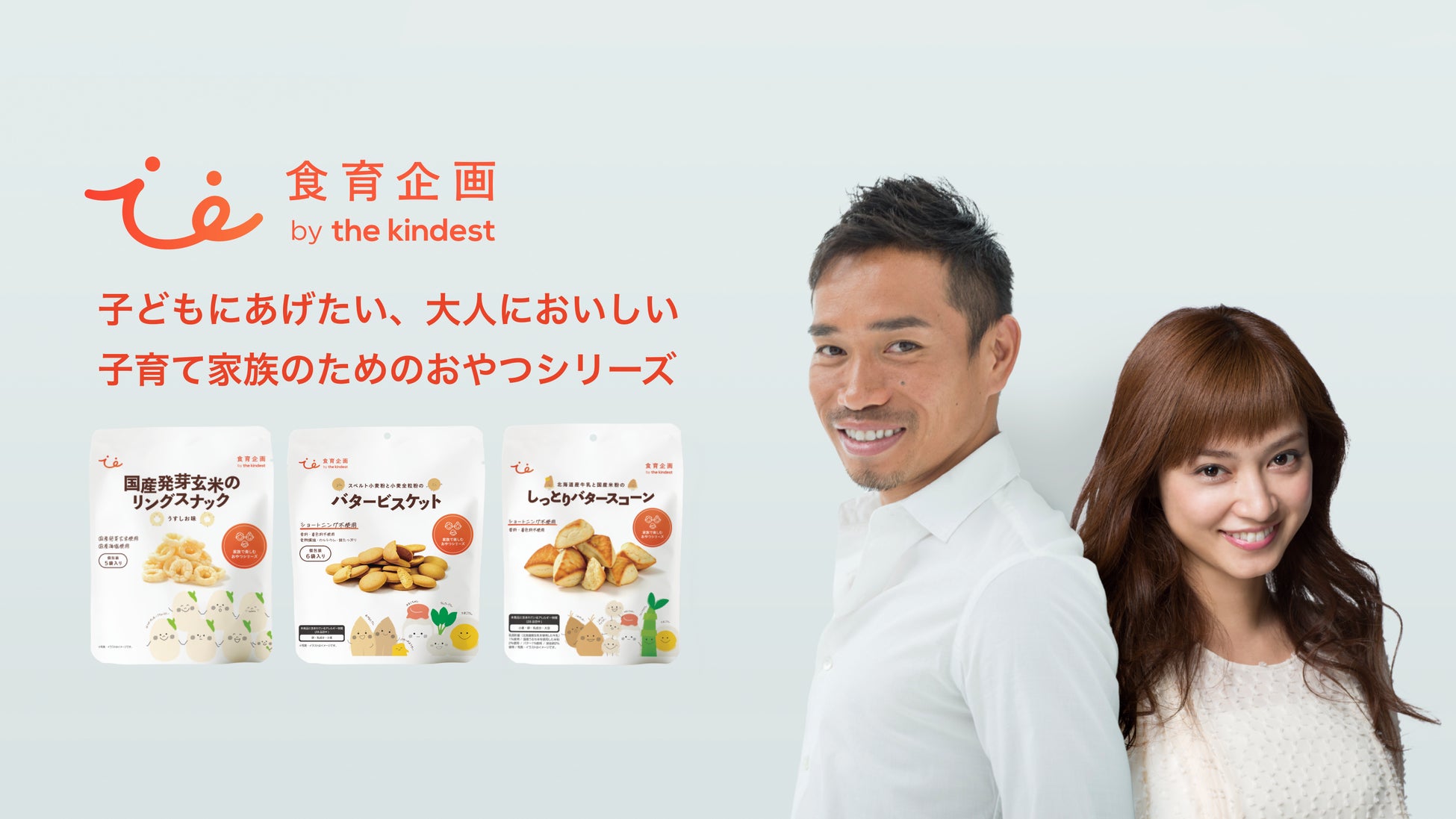 長友夫婦の協力のもと“子どもにあげたい、大人においしい”おやつを開発子育て家族のための新ブランド『食育企画 by the kindest』