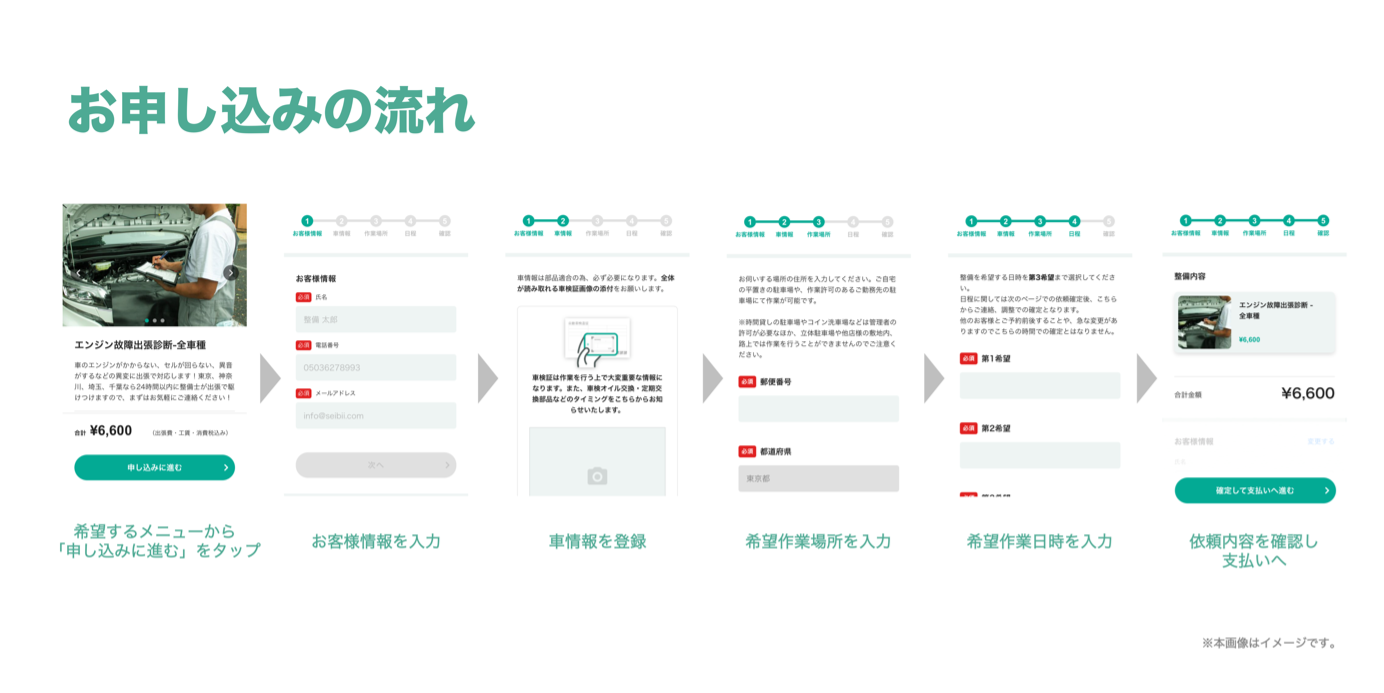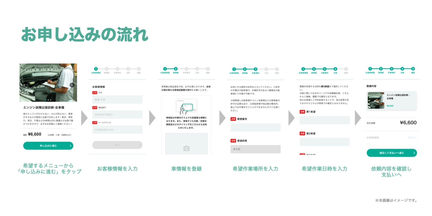 事業内容 :自動車の整備、修理出張サービス「Seibii」の開発、運営