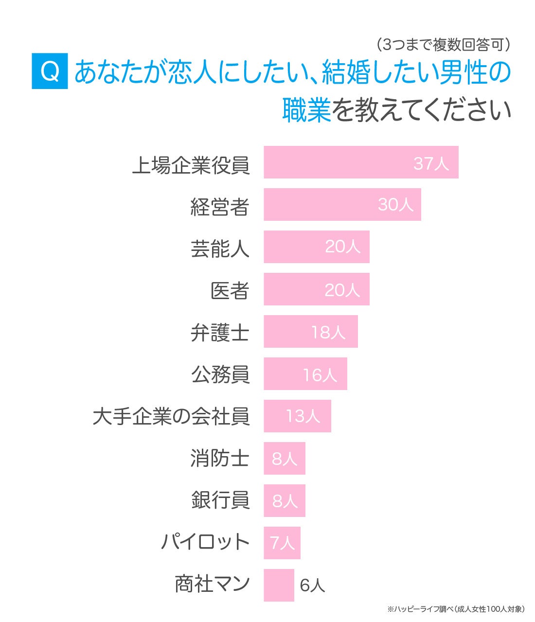 港区女子に恋人や結婚相手にしたい男性の職業を聞いたところ、「上場企業役員」が最多でした。