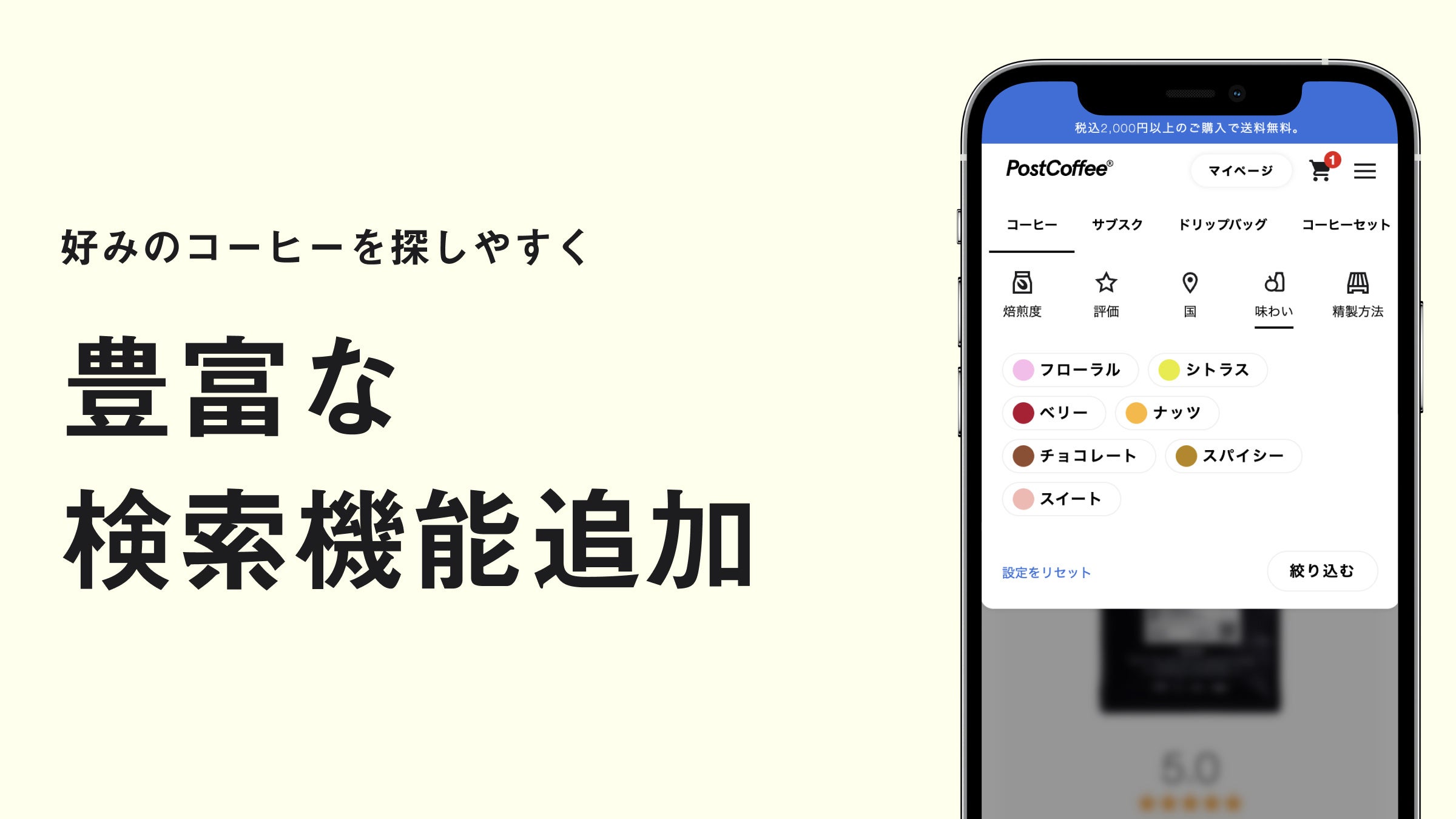 2020年2月、コーヒー診断であなたの好みのコーヒーが届くコーヒーの定期便「PostCoffeeサブスクリプション」をローンチ。その後、2022年4月にはコーヒー版ZOZOTOWNとなる日本最大級のコーヒーショッピングモール「PostCoffee」をオープン。オンラインでのコーヒーライフを進化させるため、これまで日々の細やかなアップデートの他にも大型のアップデートを複数回実施してまいりました。