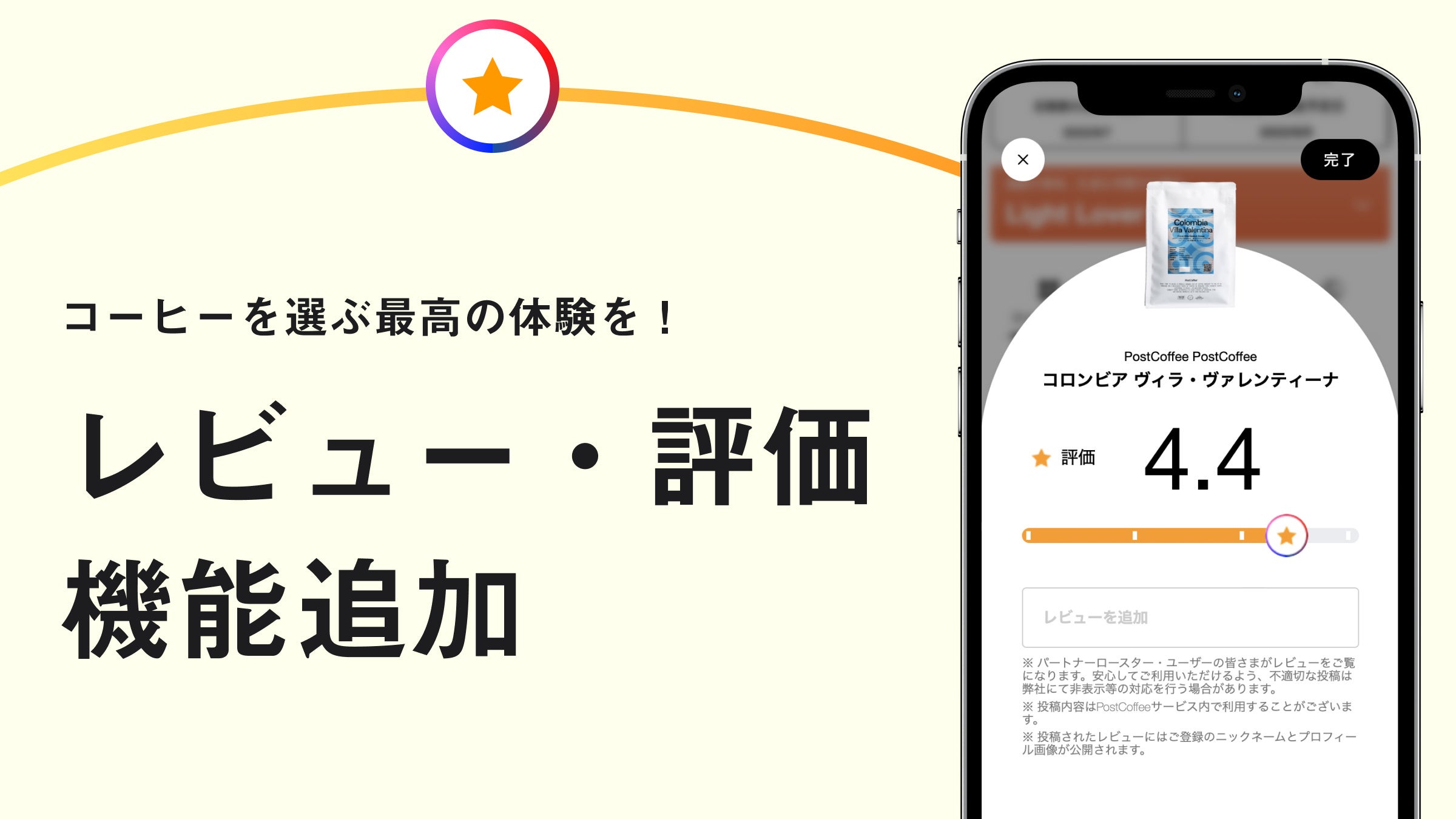 多くのお客さまから頂いた声やリクエスト、ユーザーアンケートをもとに、大きく4つのアップデートを実施いたしました。コーヒーのレビュー、評価の機能が加わり、よりコーヒー選びが楽しく進化します。またサブスクプランも拡充され、色んなコーヒーを試したい方、毎日のコーヒーを届けて欲しい方など、より多様なニーズに応えられるようになりました。さらにサブスクでは1杯あたりのコーヒーの価格も値下げを実現しております。