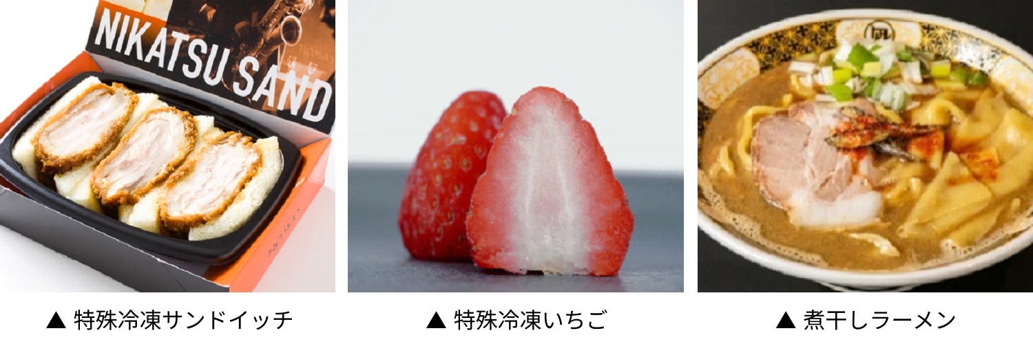 【販売商品】 冷凍弁当、特殊冷凍サンドイッチ、フローズンフルーツ、名店ラーメンなど