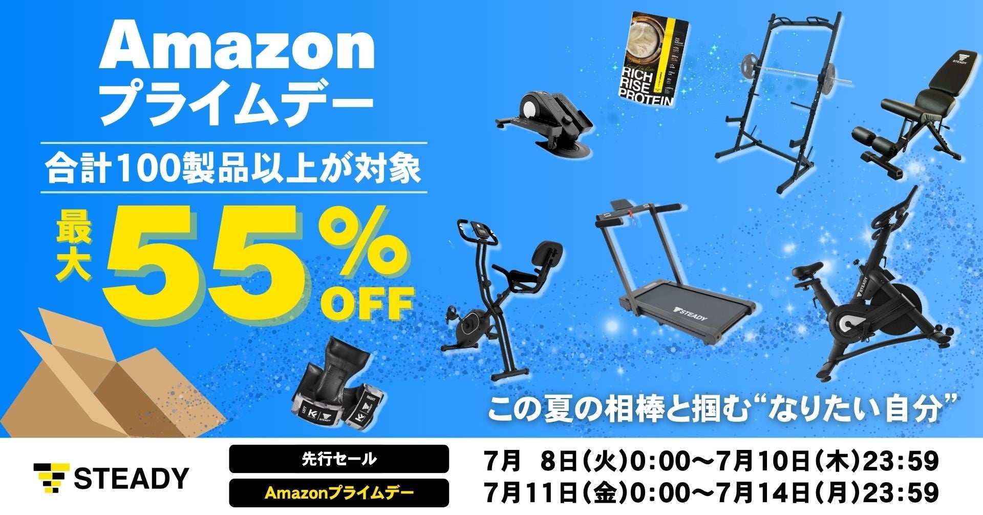Amazonにて2025年7月11日(金)0:00から7月14日(月)23:59にかけて開催される「Amazonプライムデー」および2025年7月8日(月) 0:00から7月10日(木) 23:59にかけて開催される先行セール (※1) にて、100製品以上のホームフィットネス / ストレッチ製品を最大55%OFFで販売。この夏の相棒と掴む、“なりたい自分”を家トレから掴みたい方必見です。
