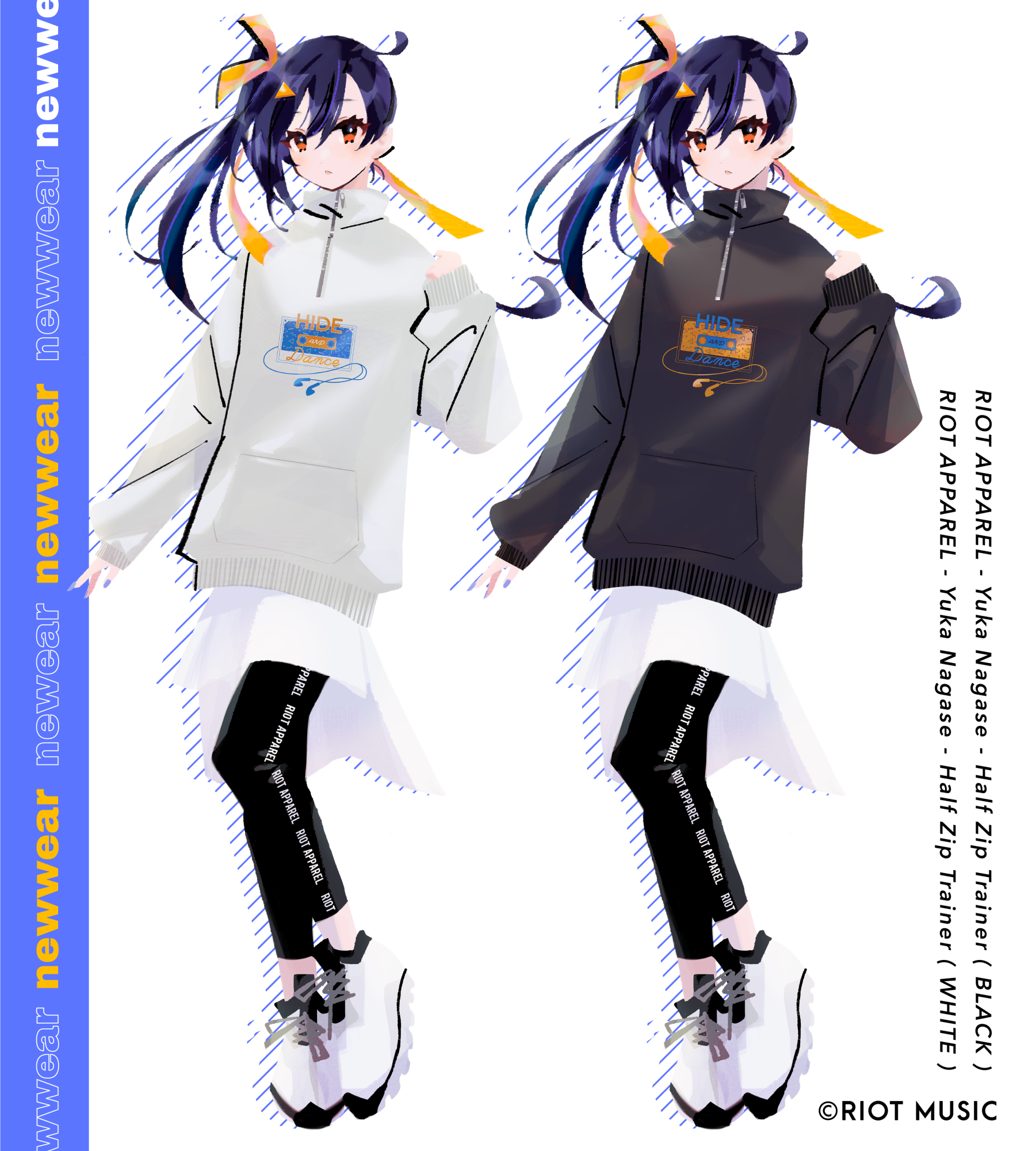 また、12月27日(月)21時より、長瀬有花チャンネルにて配信予定の「こたつとみかんと長瀬有花」と題した年の瀬ミニライブの中で、長瀬有花本人が「RIOT APPAREL - Yuka Nagase - Half Zip Trainer」を着用してライブの中に登場いたします。