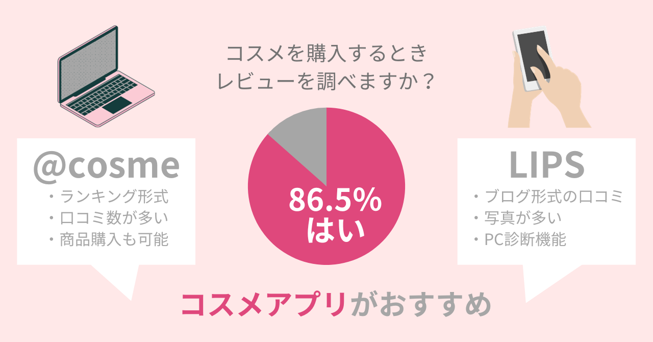 86.5%の女性がコスメ購入時に口コミをチェック。後悔しないコスメ購入には@cosmeやLIPSの利用がおすすめ!