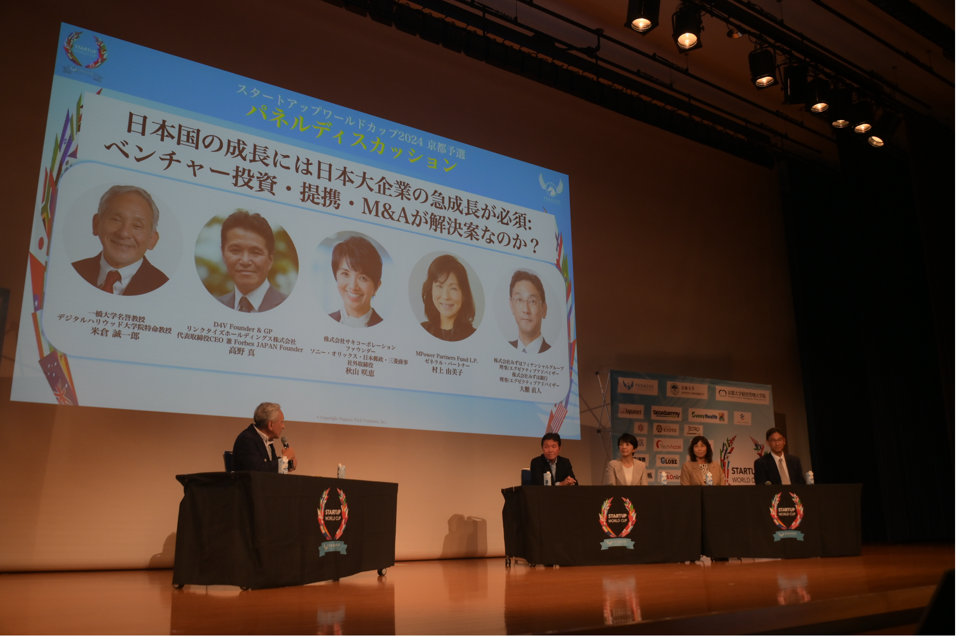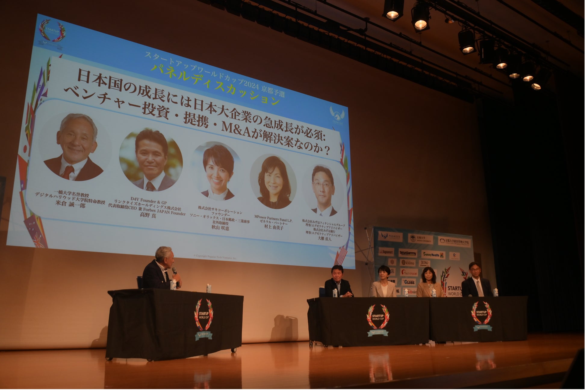 パネルディスカッションでは、株式会社みずほフィナンシャルグループ理事/エグゼクティブアドバイザー・株式会社みずほ銀行 理事/エグゼクティブアドバイザーの大櫃直人氏、MPower Partners Fund L.P.でゼネラルパートナーの村上由美子氏、株式会社サキコーポレーション ファウンダーでソニー・オリックス・日本郵政・三菱商事の社外取締役である秋山咲恵氏、D4V Founder & GP リンクタイズホールディングス株式会社代表取締役 CEO兼 Forbes JAPAN Founderの高野真氏が登壇、一橋大学名誉教授・デジタルハリウッド大学院特命教授の米倉誠一郎氏がモデレーターとして、「日本の成長には日本の大企業の急成長が必須:ベンチャー投資・提携・M&Aが解決策なのか?」というテーマでディスカッション頂きました。