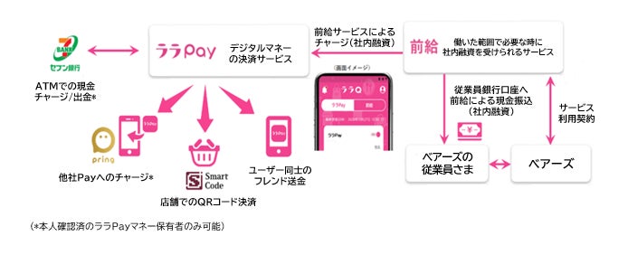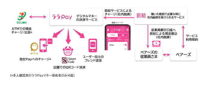 ※本サービスにおける「前給サービスによるチャージ」は企業から従業員への社内融資の資金をデジタルマネーにチャージするものであり、労働政策審議会で議論されている資金移動者の口座への賃金支払いに該当するものではありません。