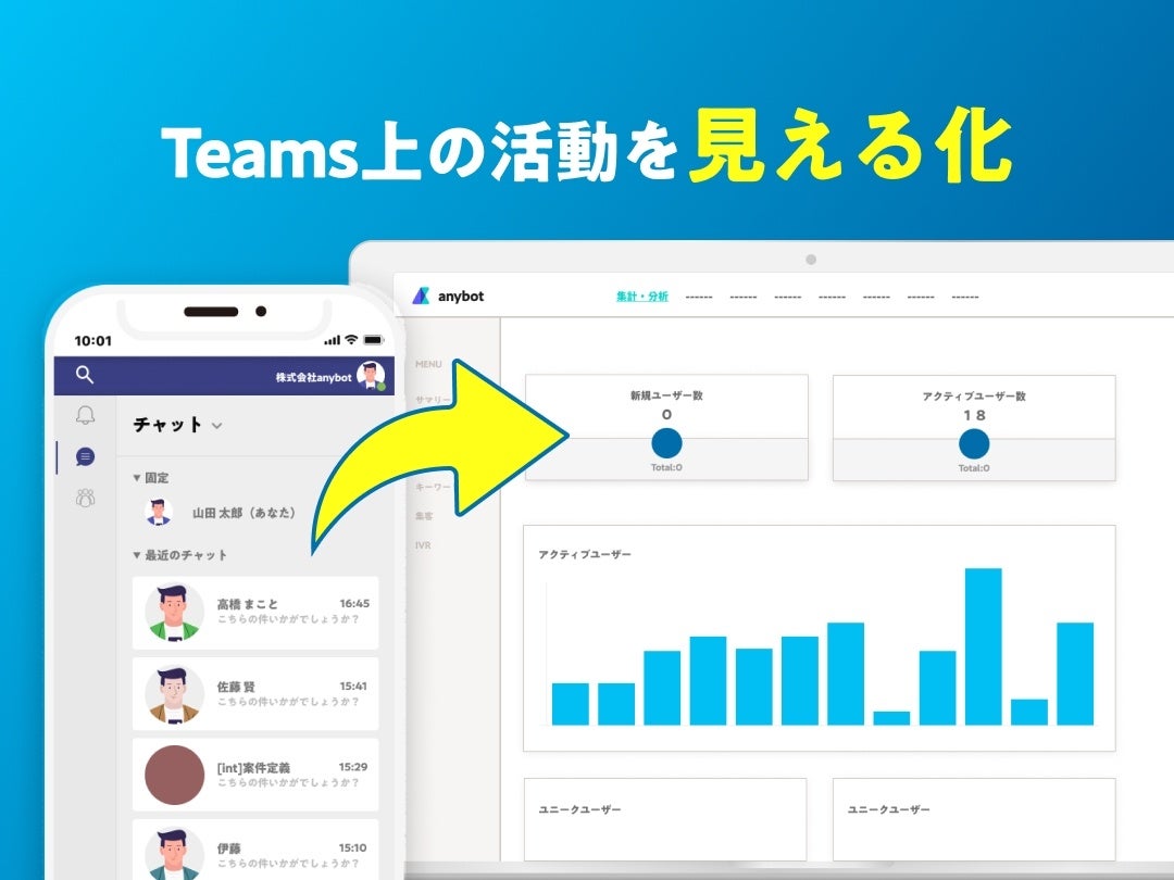 LINEミニアプリ・チャットボットの「anybot」(エニーボット)、Teams上での活動をダッシュボードで確認できる機能を追加