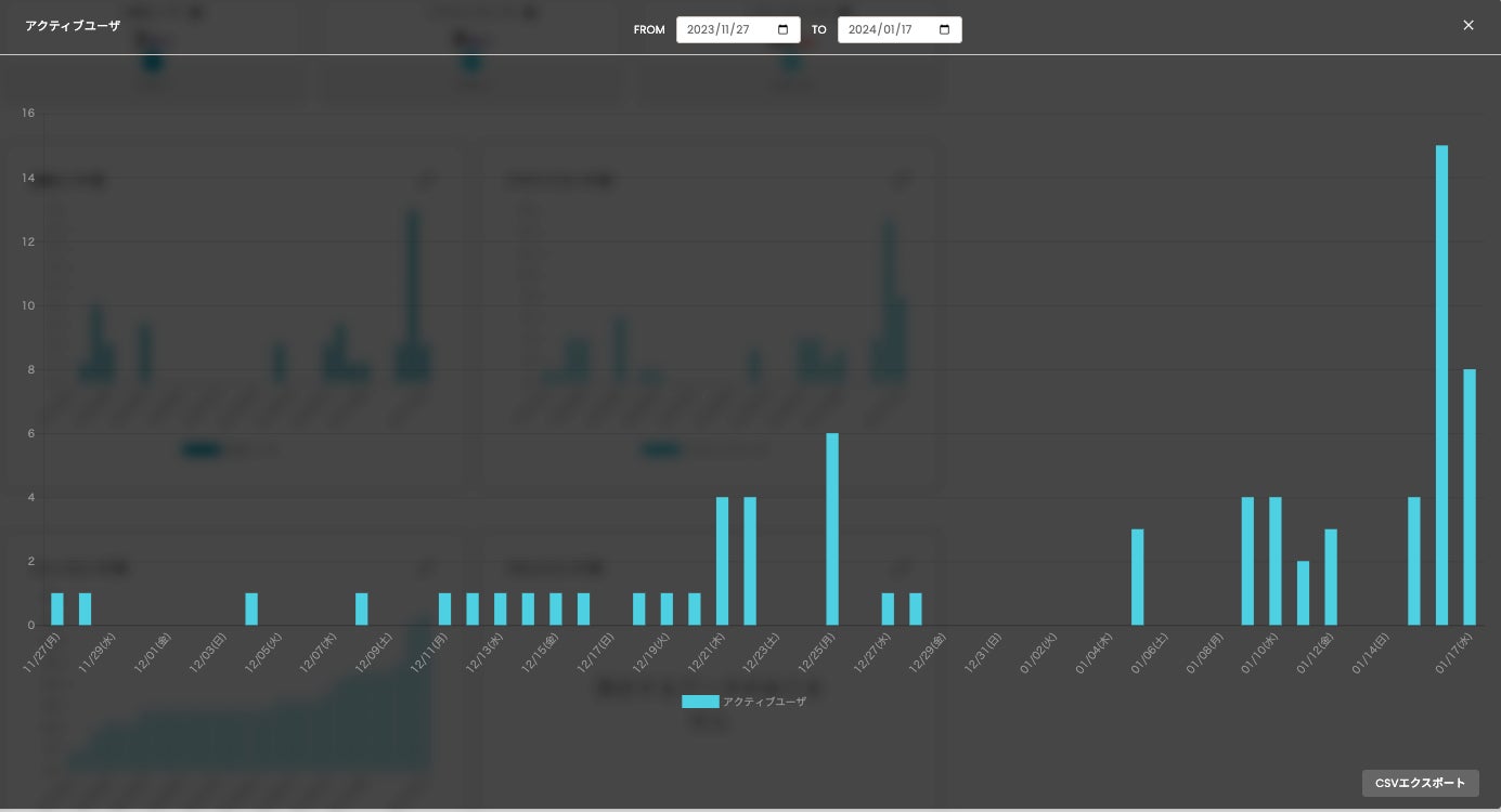 右下にあるCSVエクスポートボタンから、選択期間のデータをダウンロードできます。