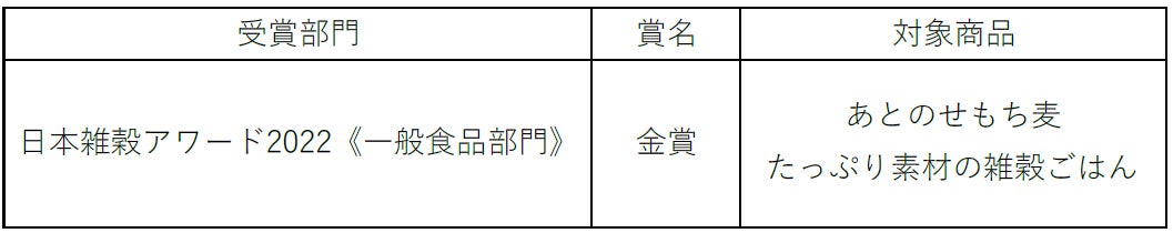 日本雑穀アワード2022《一般食品部門》『あとのせもち麦』『たっぷり素材の雑穀ごはん』金賞受賞!