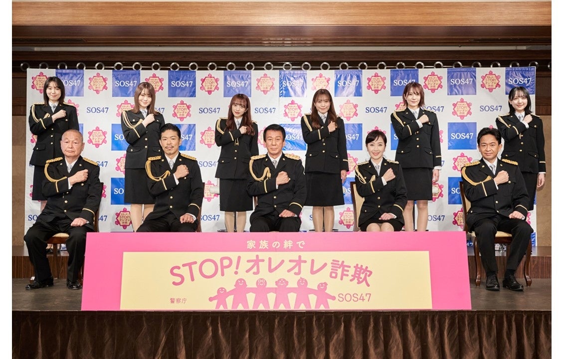この度、「ストップ・オレオレ詐欺47~家族の絆作戦~」プロジェクトチームの決起集会2021が都内で開催され、特別防犯対策監(永久委嘱)の杉良太郎氏をはじめ、特別防犯支援官の伍代夏子氏、城島茂氏、EXILE 松本利夫氏、吉原朝馬氏、飯豊まりえ氏、乃木坂46 山崎怜奈氏、AKB48 向井地美音氏、SKE48 斉藤真木子氏、NMB48 小嶋花梨氏、STU48 石田千穂氏が登壇し、それぞれの活動を通しての特殊詐欺撲滅に対する想いや今後の活動への意気込みについて語るとともに、新たに制作した特殊詐欺の手口紹介動画の発表を行いました。