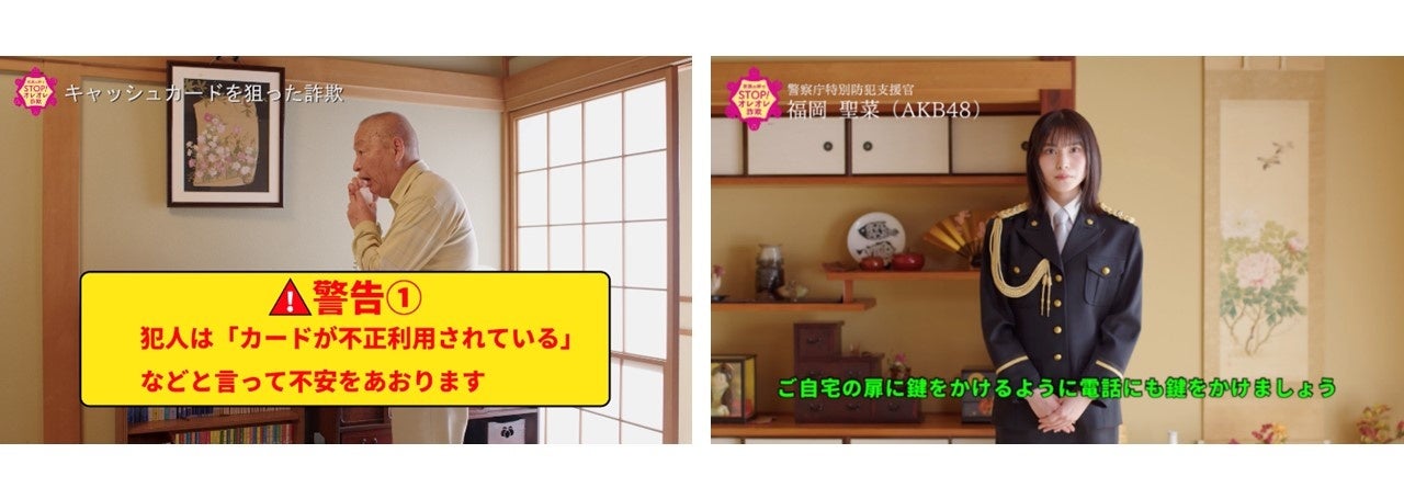 また、本動画にAKB48のメンバーが出演していることを受けて、向井地支援官は、「この動画は詐欺の当事者となりうるような高齢者の方だけではなく、若い方にも見てほしい動画です。若い世代には、この動画を見て、家族や通りすがりのATMで電話をかけている人に声を掛けてあげないといけないと思ってほしいです。」と、述べました。