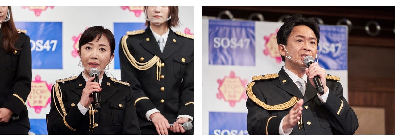 飯豊支援官は、「私もSOS47の活動を3年ほどさせていただいており、主に10~20代の皆さんに向けて、例えば、合言葉を決めるなど家族のルールを作るなどの行動をして、家族や親戚の方を守ってくださいということを伝えています。SOS47のCMやポスターにも出演しており、より多くの方の目に留まってほしいと思っています。まだまだ被害は減りませんが、皆さん1人1人の意識で被害が減ると思っています。そのため、これからも皆さんご協力をよろしくお願いします。」と国民に向けて特殊詐欺被害防止の協力を求めました。