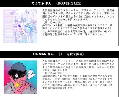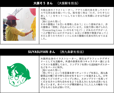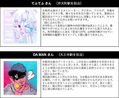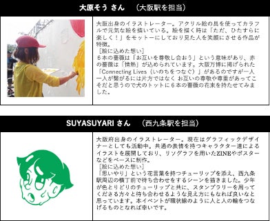 オリジナルNFT駅スタンプの製作には、関西にゆかりのあるイラストレーター・アーティストにデザインをお願いし、この企画だけのオリジナル駅スタンプに仕上げています。
