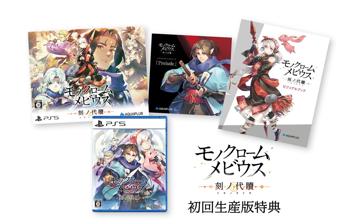 最新作『モノクロームメビウス 刻ノ代贖(トキノタイカ)』は、アクアプラス初となるPlayStation®5版/PlayStation®4版/Steam®版で同時発売のRPGです。