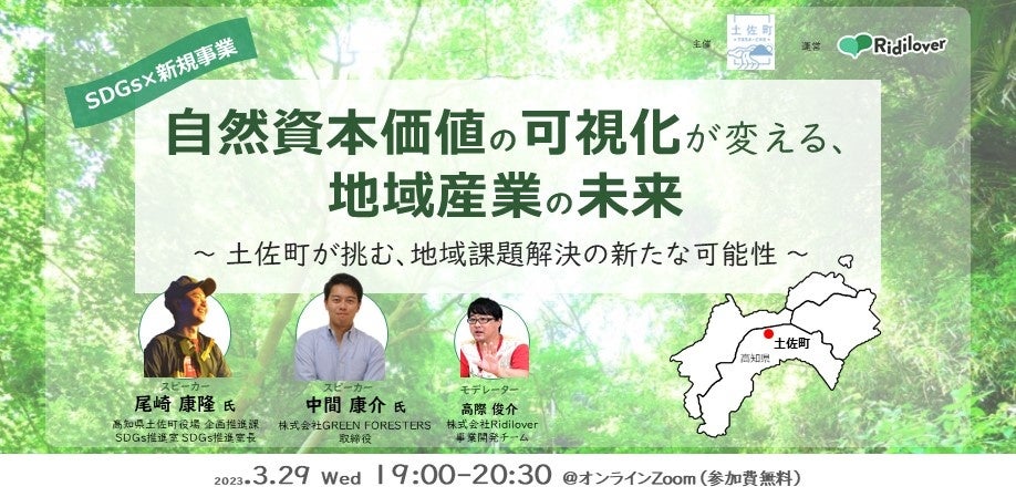 株式会社Ridilover(以下、リディラバ)は、高知県土佐町からの委託を受け、本モデル事業にて取り組む「自然資本価値の可視化が変える、地域産業の未来」をテーマにした無料ウェビナーを開催します。