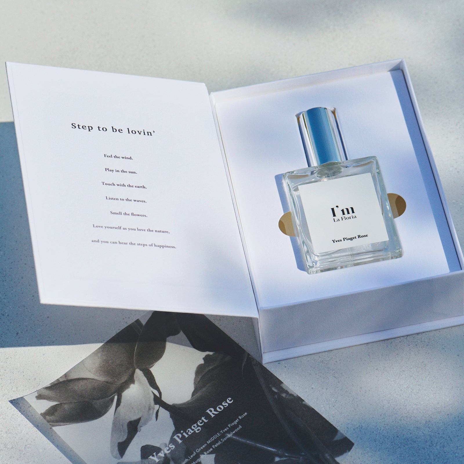 華やかさと清々しさ、妖艶さと清純さを併せ持つ未体験な香りが、アイム ラフロリアのイヴピアッツェローズの香りです。