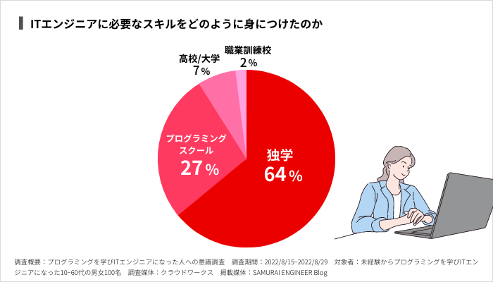 [5]未経験から「独学」でITエンジニアになった人が64%