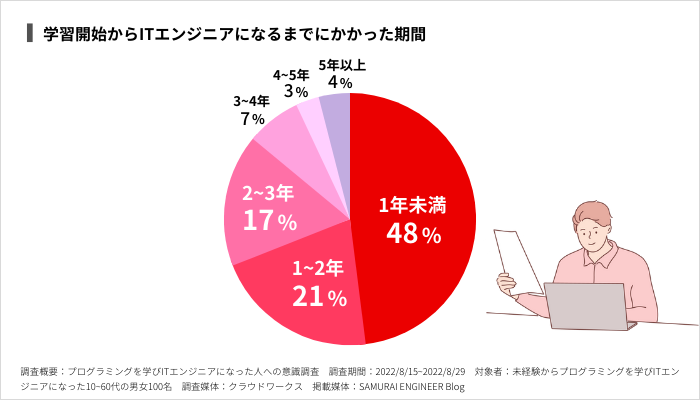 [4]未経験でも48%が学習開始から「1年未満」でITエンジニアに