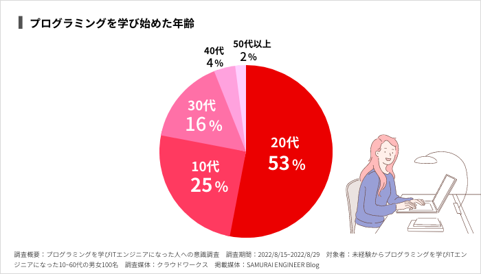 [2]過半数が20代でプログラミング学習を開始し、30代以上で学習を開始した人は全体の4分の1以下に留まった