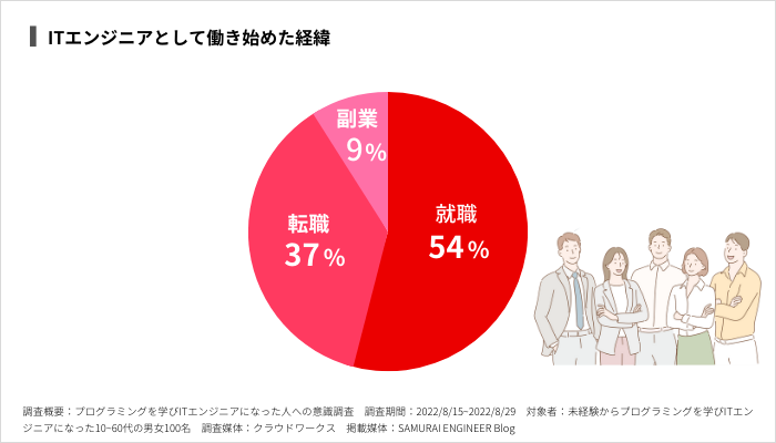 [3]ITエンジニアとして働き始めた経緯は「就職」が54%、「転職」が37%